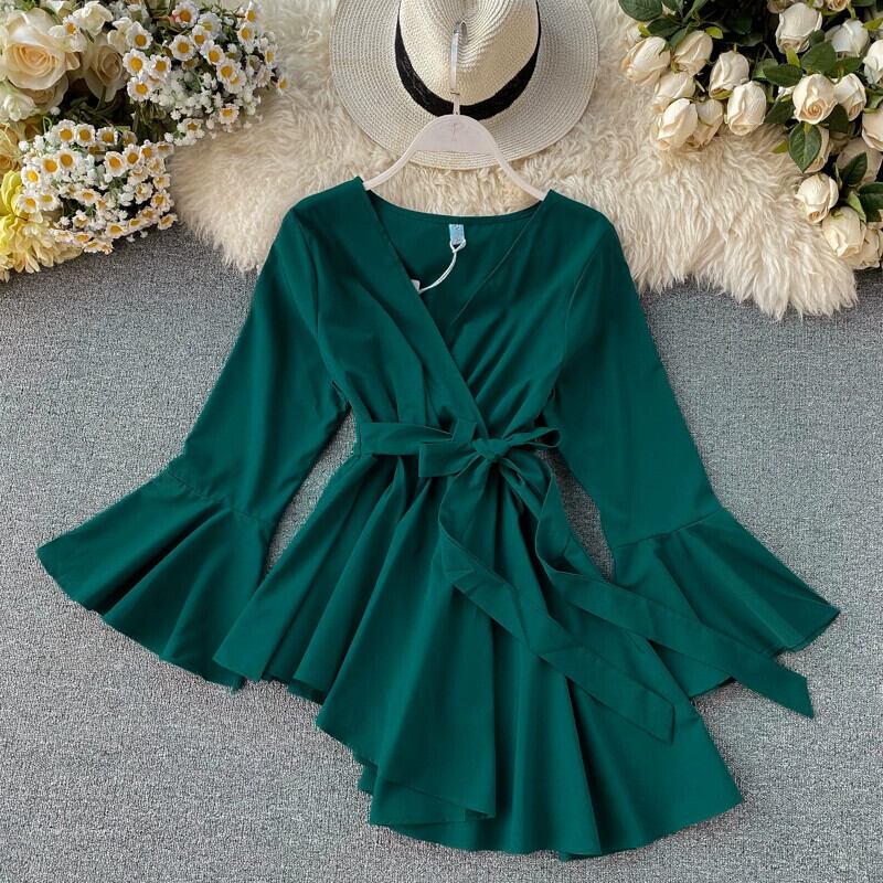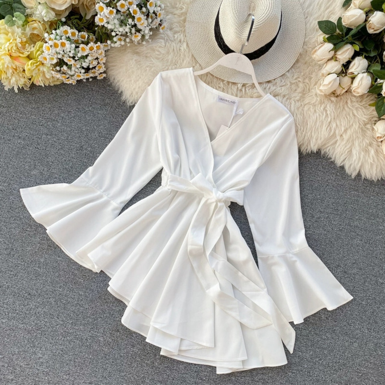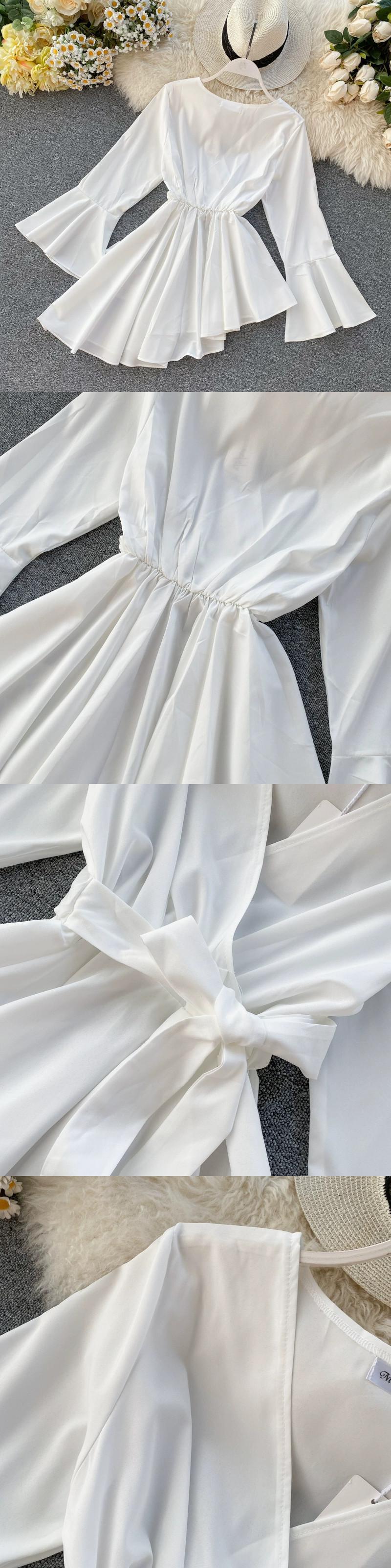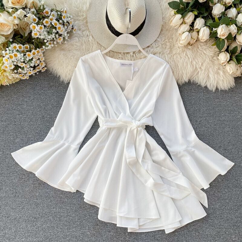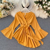 ニッチなデザイン、不規則なレースアップウエスト、スリムなベルスリーブ、気質のあるトップスを備えたタイのトレンディなブランドのレディースシャツ jie573153505