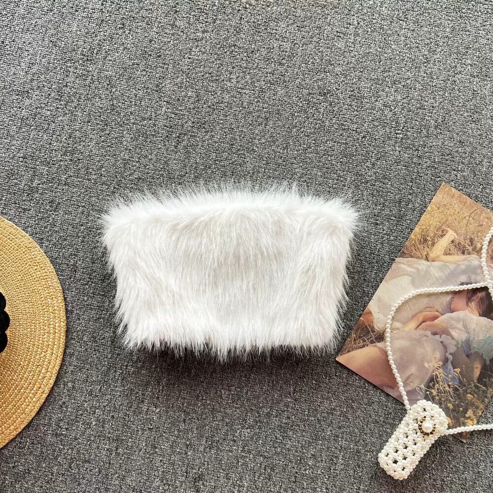 ヨーロッパとアメリカのセクシーなチューブトップ、エインスタイル、万能ショートスタイル、毛皮で包まれた胸のインナーウェア、ファッショナブルなアウタートップ、女性の秋冬スタイル オータム 秋物 ウィンター 冬物 ヨーロピアン jie65245367971