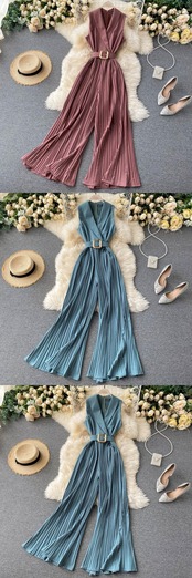 香港スタイルのレトロなトレンディなジャンプスーツの女性、スーツの襟、ノースリーブストラップ、ウエストスリム、成熟した姉妹のハイウエストワイドレッグパンツ jie94055550907