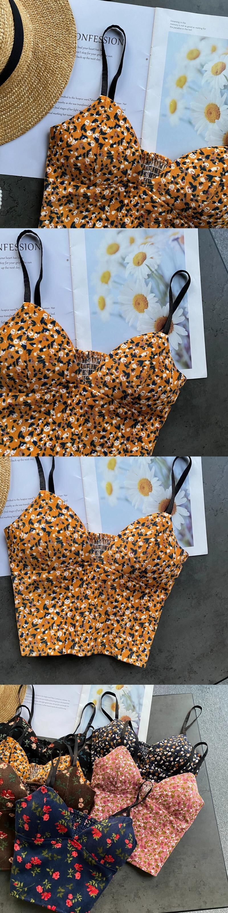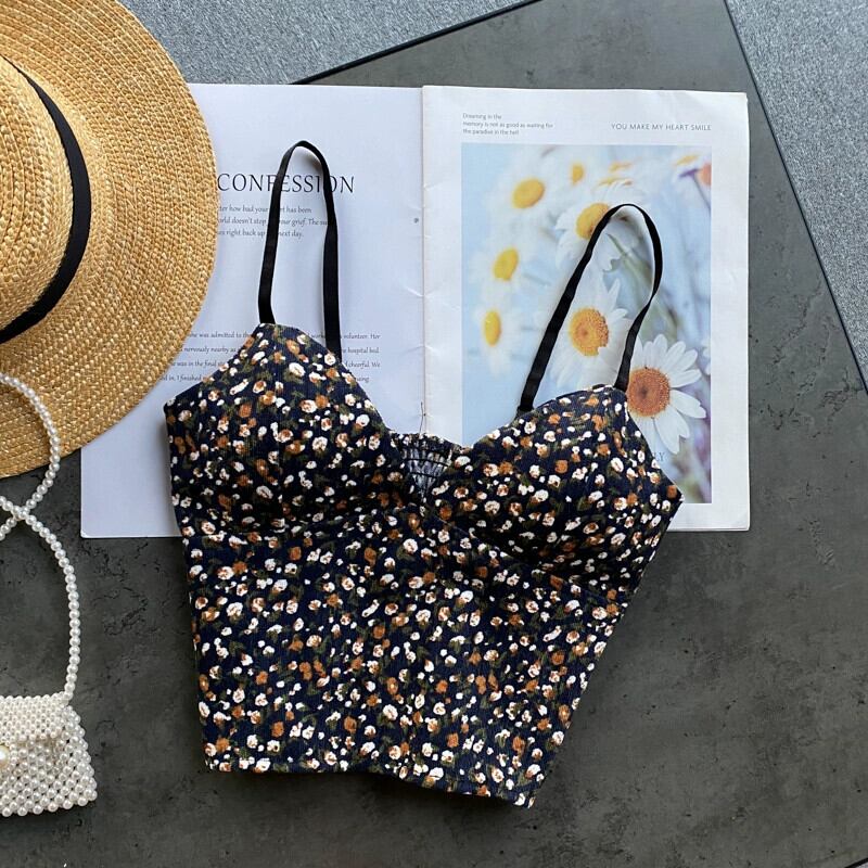 レトロコーデュロイキャミソールレディースおしゃれインナーと万能セクシーVネックショート花柄トップス jie47027113002
