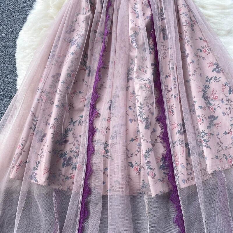 宮殿スタイルドレス 2022 新しいサマードレス女神ファン策略シースルーメッシュミッドレングス花妖精スカート レース 夏物 花柄 jie49593179875