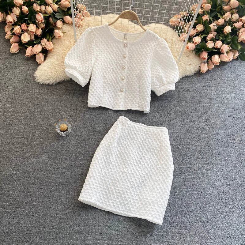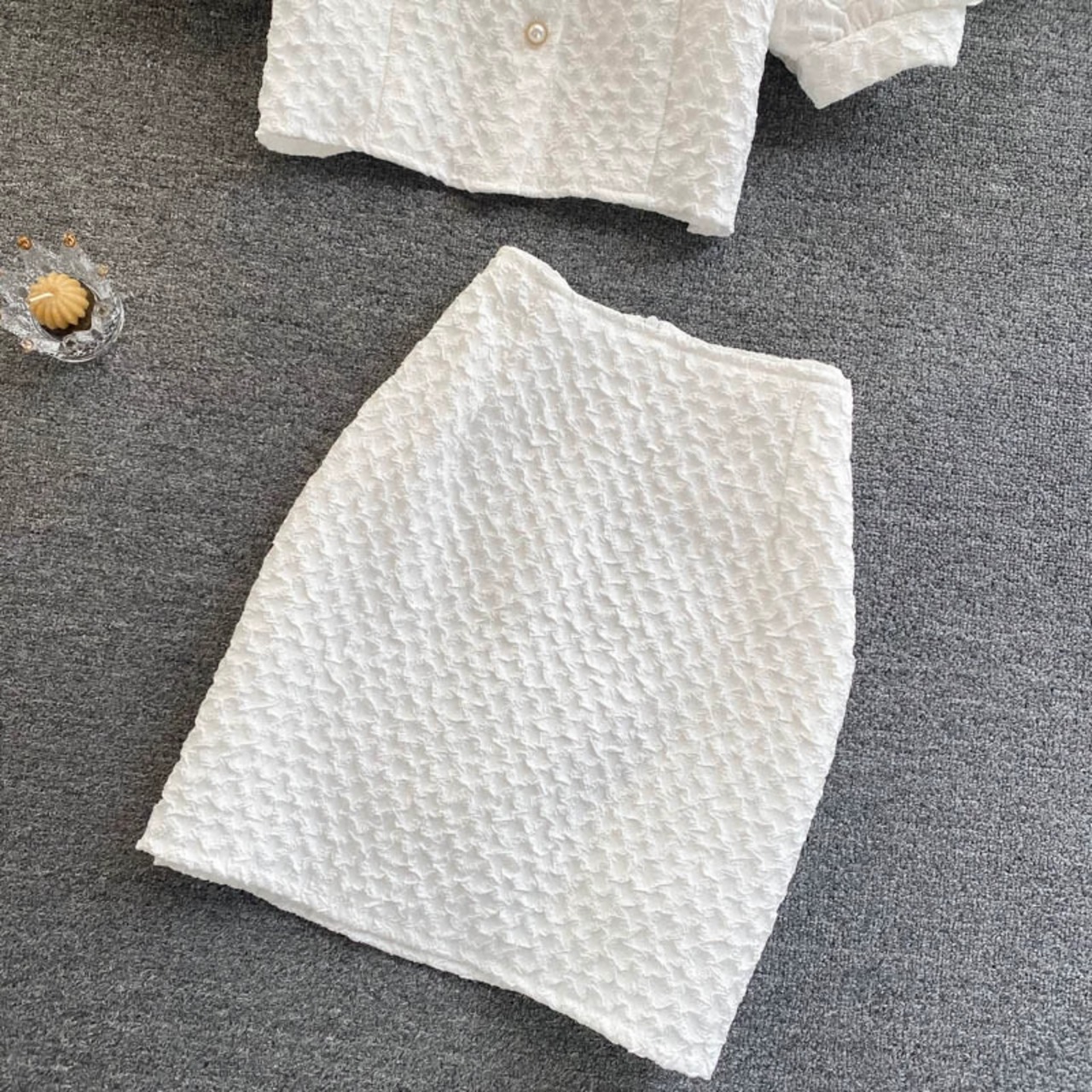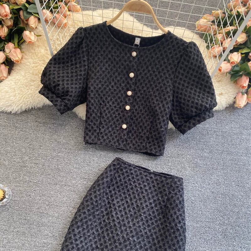 Xiaoxiang セレブ気質スーツ 2022 新しいスタイルの女性のスタイルのパフスリーブショートトップ多用途ハイウエストスカート ハイウェスト jie61603787866