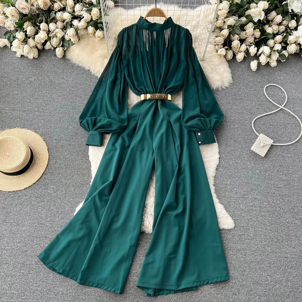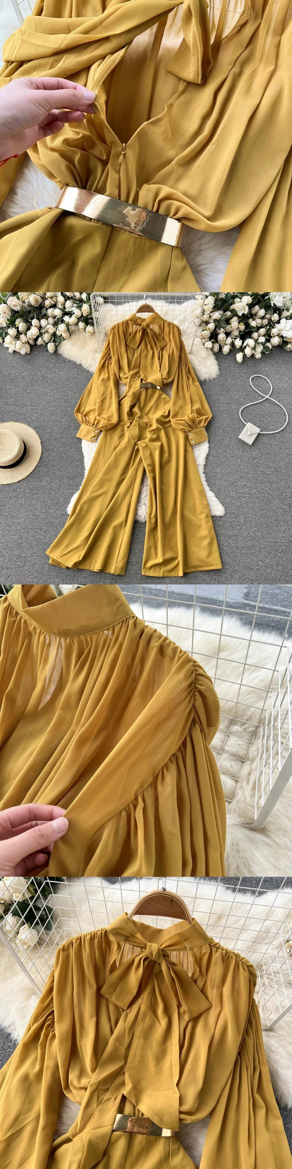 ロイヤルシスタースタイル通勤女性の 2022 春服気質スクエアネック可能スリムロングワイドレッグジャンプスーツ スプリング 春物 ワイドパンツ スクウェア jie87057640577
