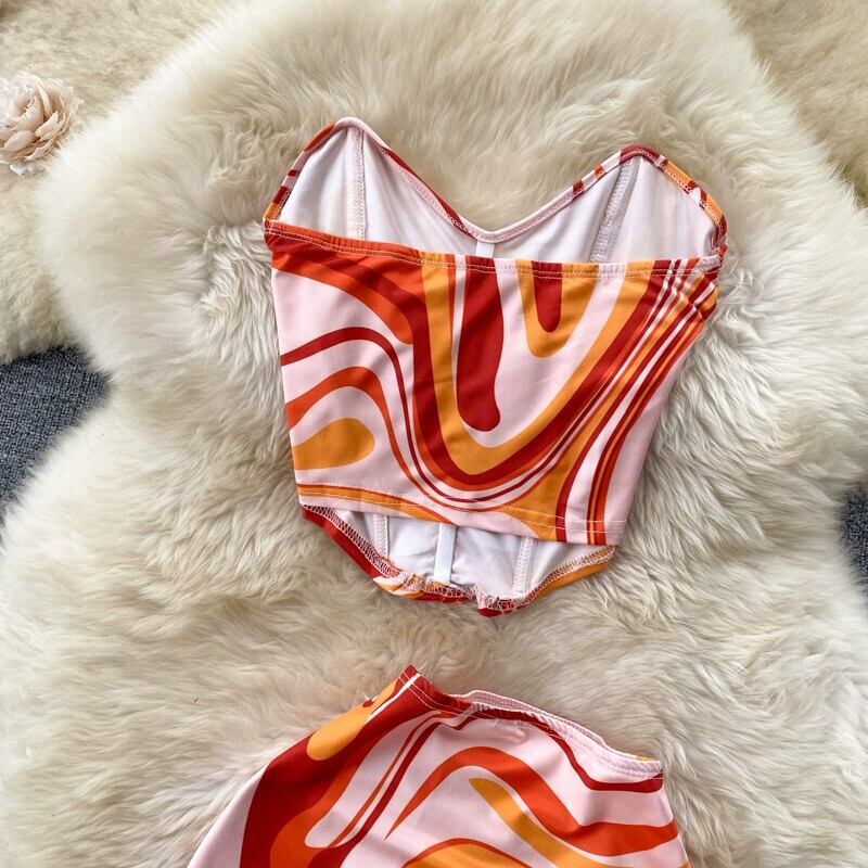 ヨーロッパとアメリカの春 2022 ショートセクシーなおへそカバートップ気質プリントセクシーなヒップカバーショートスカートツーピーススーツ スプリング 春物 ヨーロピアン jie93266718806