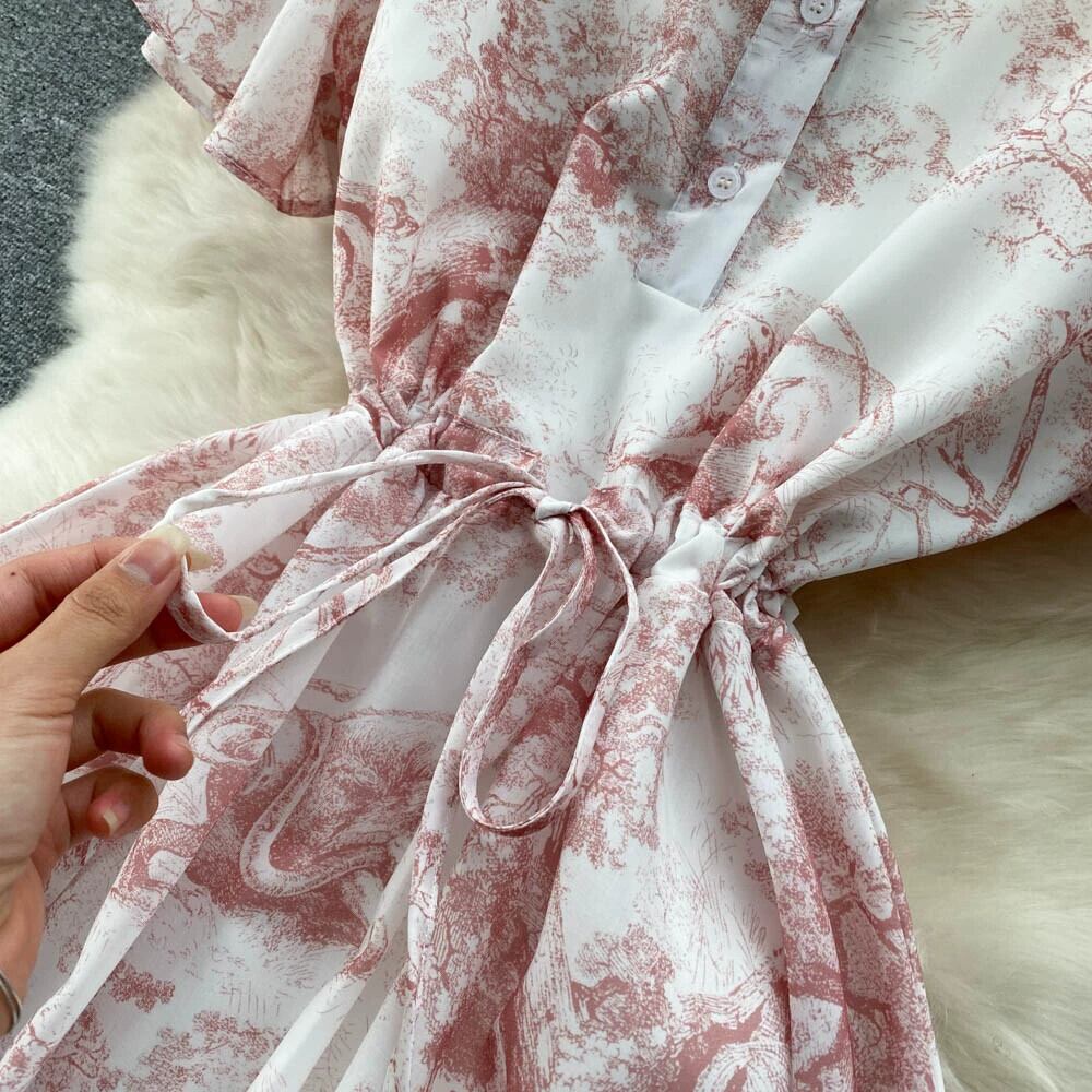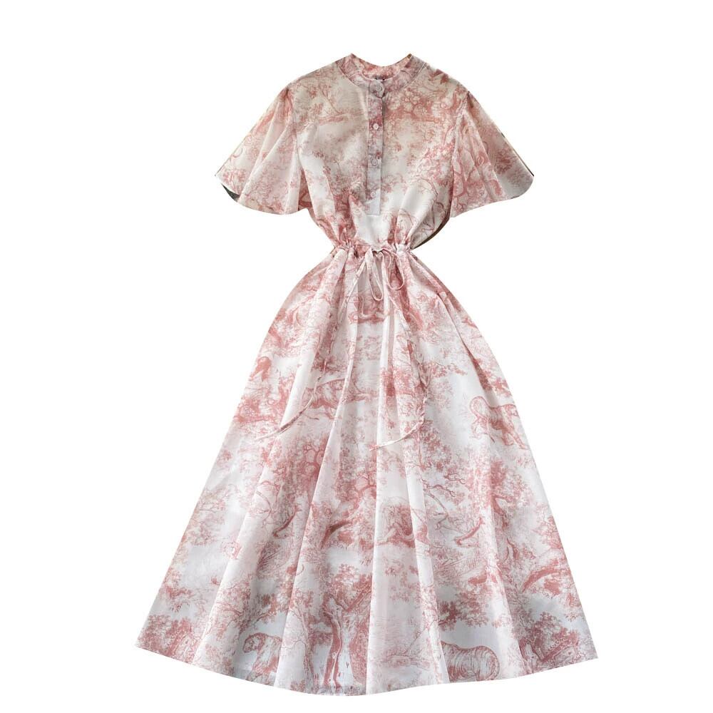 2022春コットンプリント柄裏地付き大きめスカートフェミニンロングワンピース スプリング 春物 jie23625899790