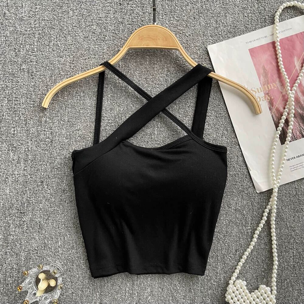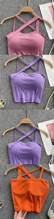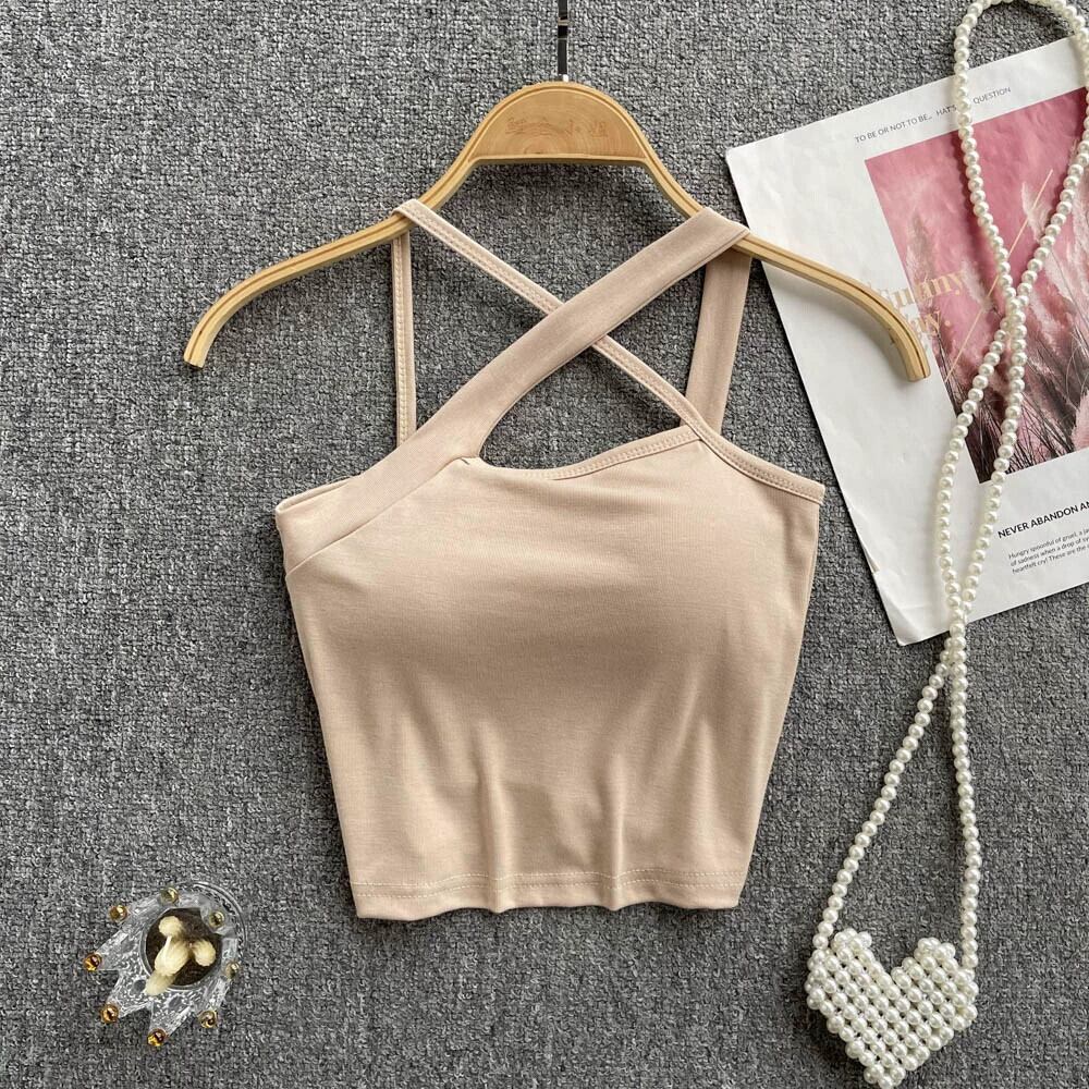 2022 夏クロスキャミソール女性のアウターウエストスリムスタイルチェストラップトップ胸パッド付き サマー 夏物 jie1847042953