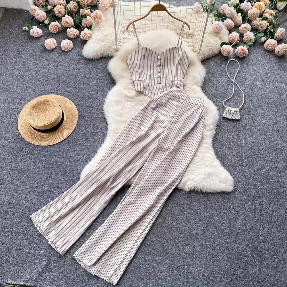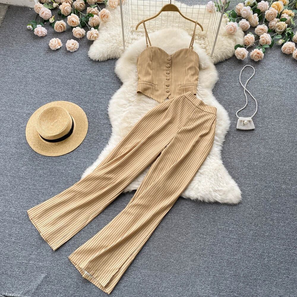 2022年夏新作レディーススーツ おしゃれ 洗練 チューブトップ ストライプ キャミソール パンツ 2点セット サマー 夏物 jie49840922997