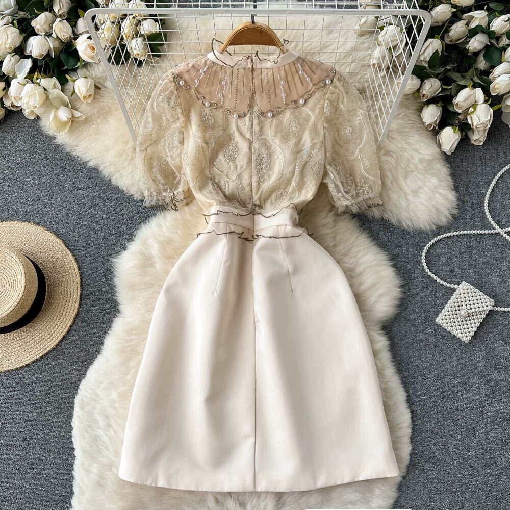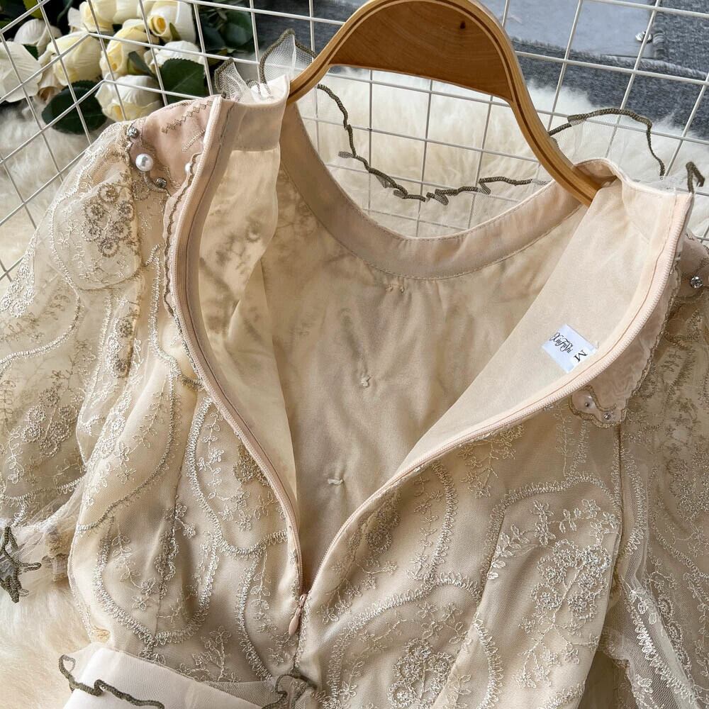 レトロな宮殿スタイルのハイエンドレディライクドレス夏2022新しいスタイルのウエストを減らす年齢を減らす宴会イブニングドレス レース サマー 夏物 jie77894988016