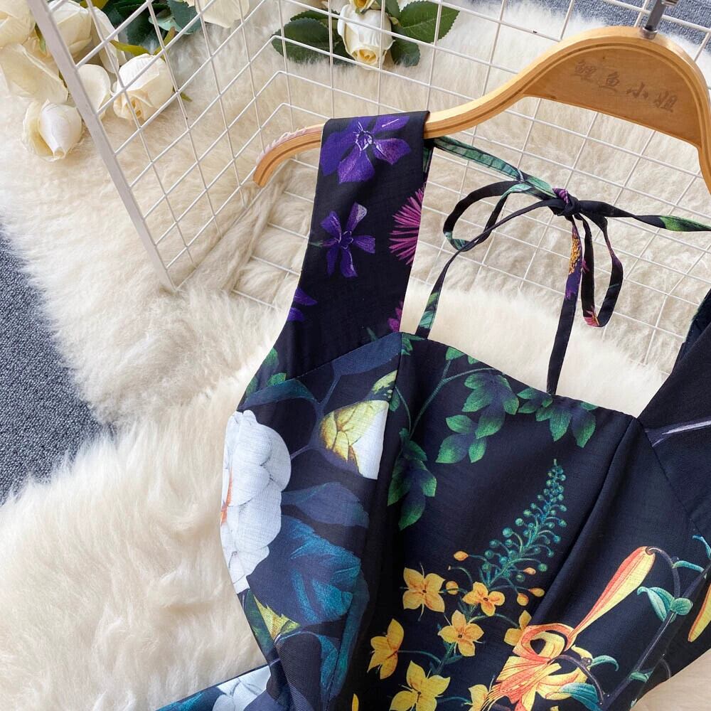 フレンチレトロウエストスリムベストドレス夏の女性の海辺の休暇プリント気質Aラインロングスカート サマー 夏物 jie43348558749