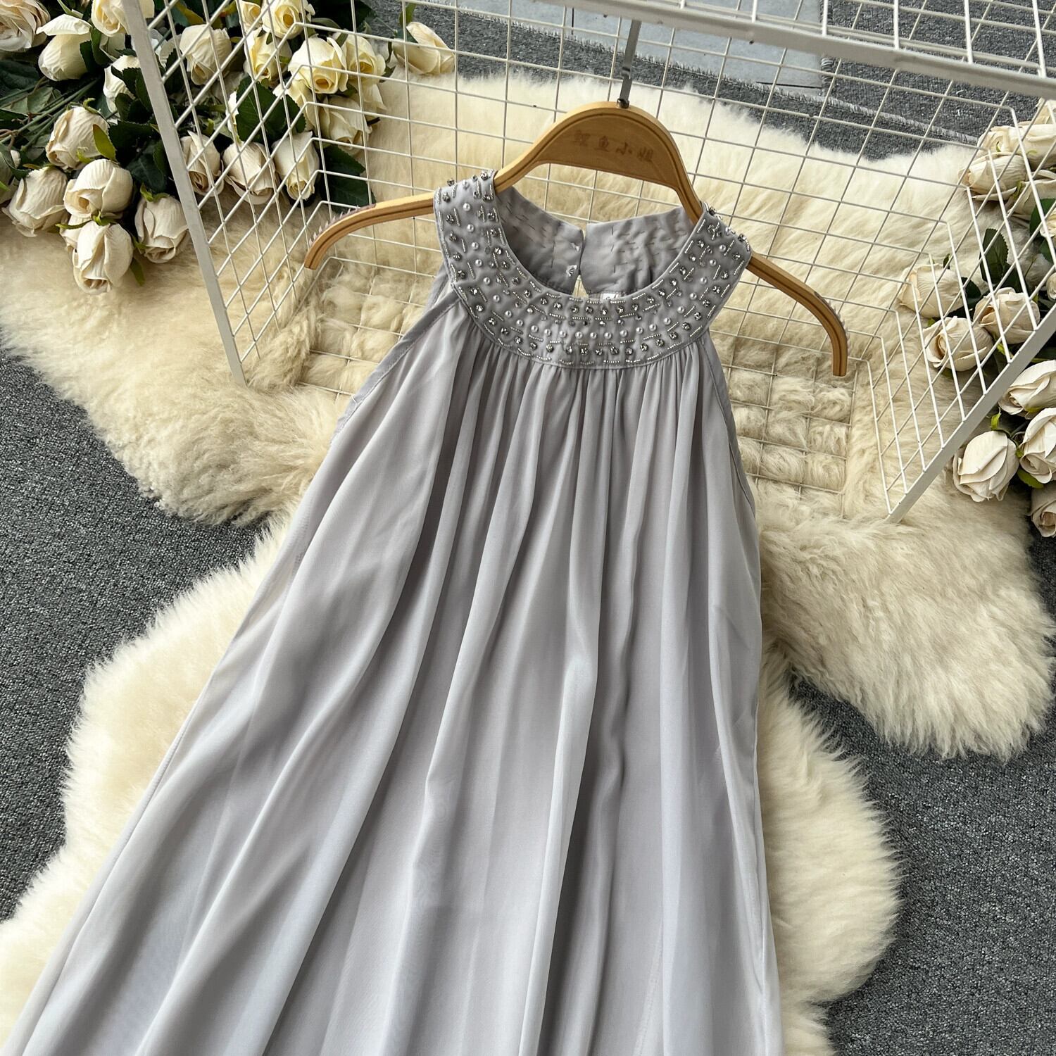 夏のニッチデザインフレンチスタイルの小さな香りプリンセスホルタードレス女性ノースリーブルーズ妖精人形スカート サマー 夏物 jie87471180922