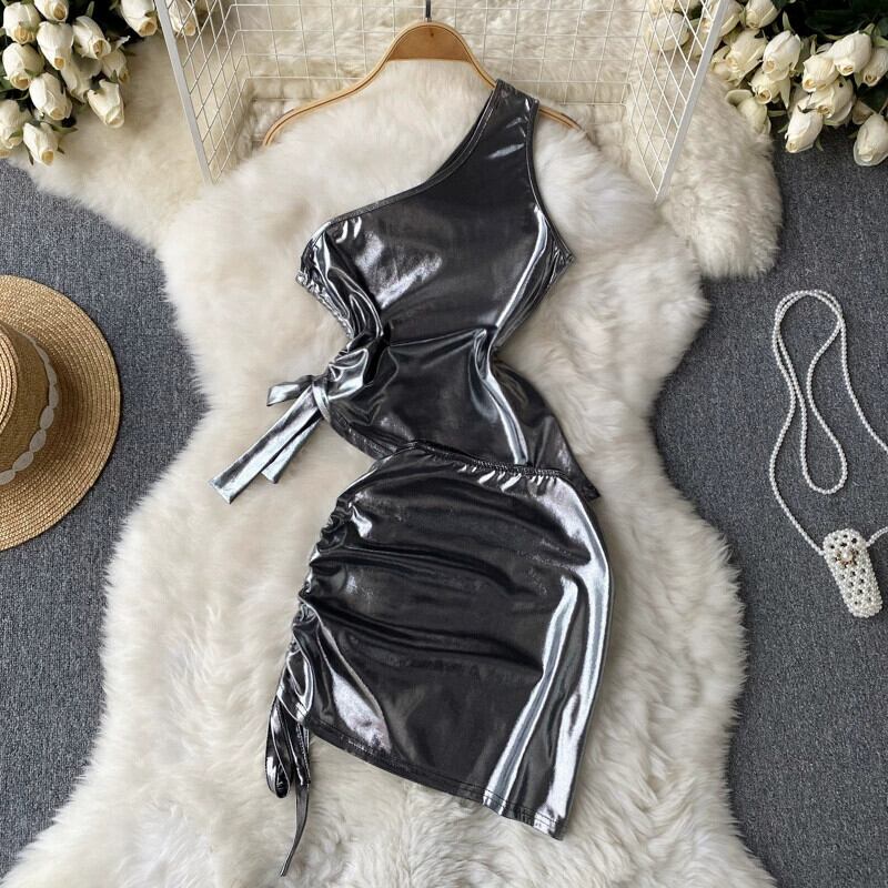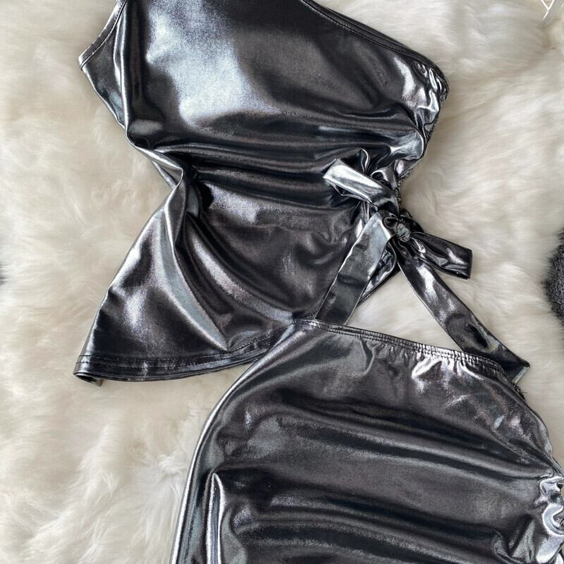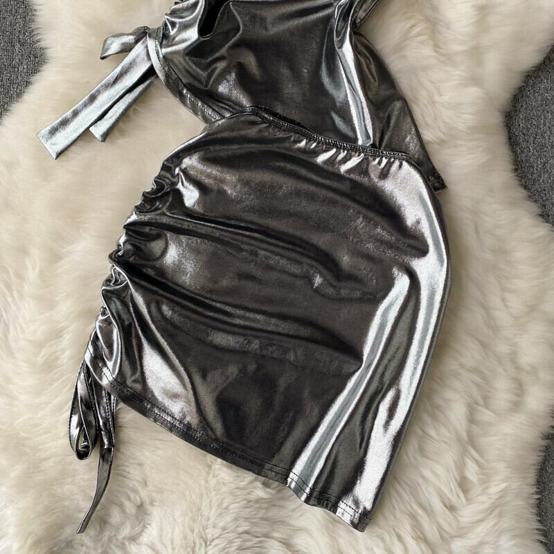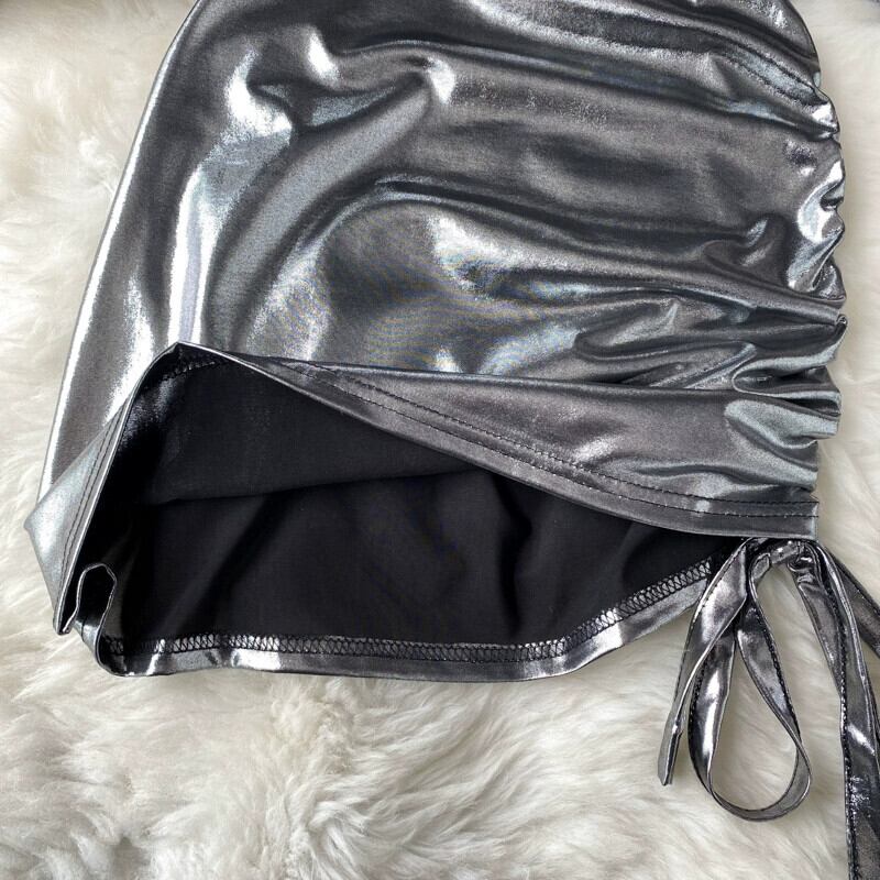 ヨーロッパとアメリカの香港スタイルの春と秋のサテン無地レースアップ斜め肩ノースリーブトップヒップカバーショートスカートセクシーなツーピーススーツ スプリング 春物 オータム 秋物 ソリッドカラー ヨーロピアン jie38315136270