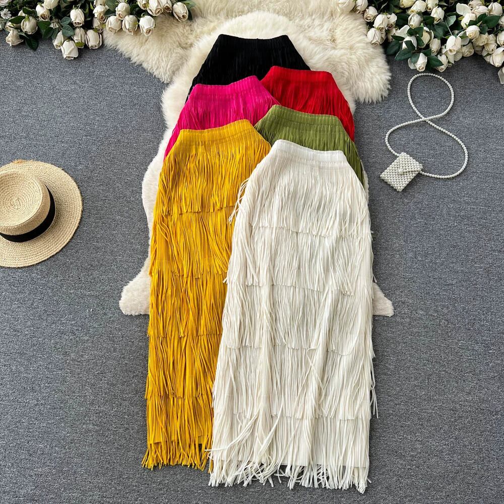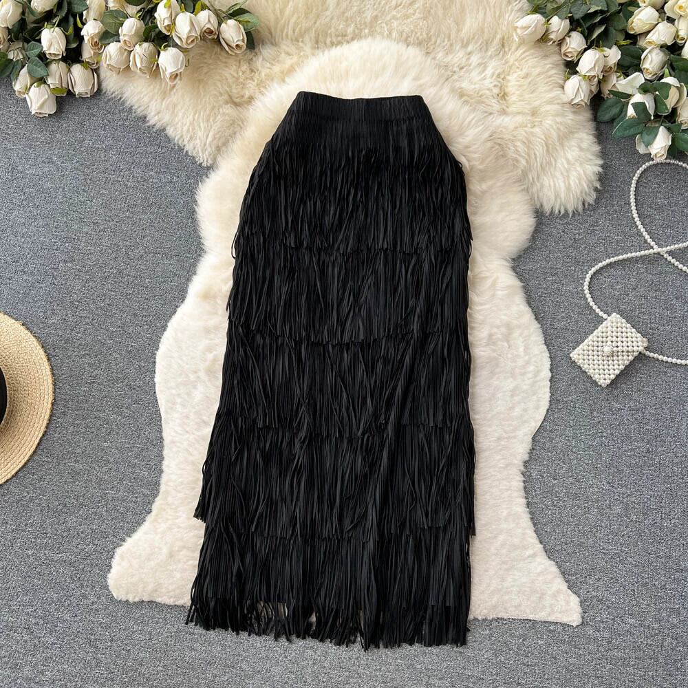 夏の新しいプリーツレッドテルスカートニッチデザインハイエンドケーキスカートウエスト痩身ヒップスカート サマー 夏物 jie1883645829