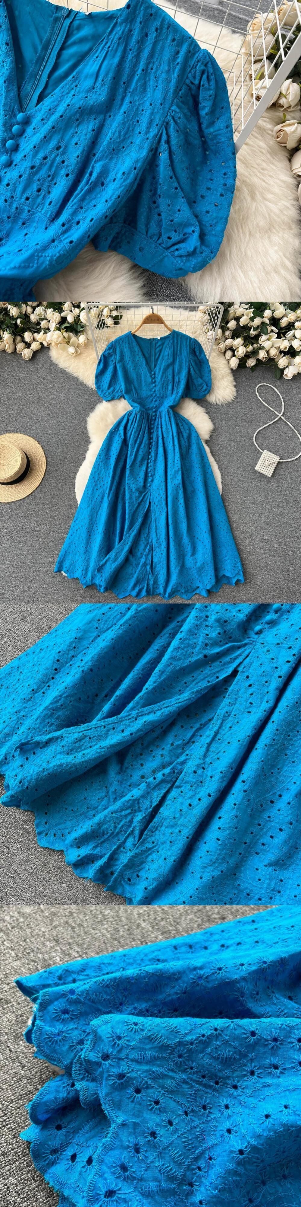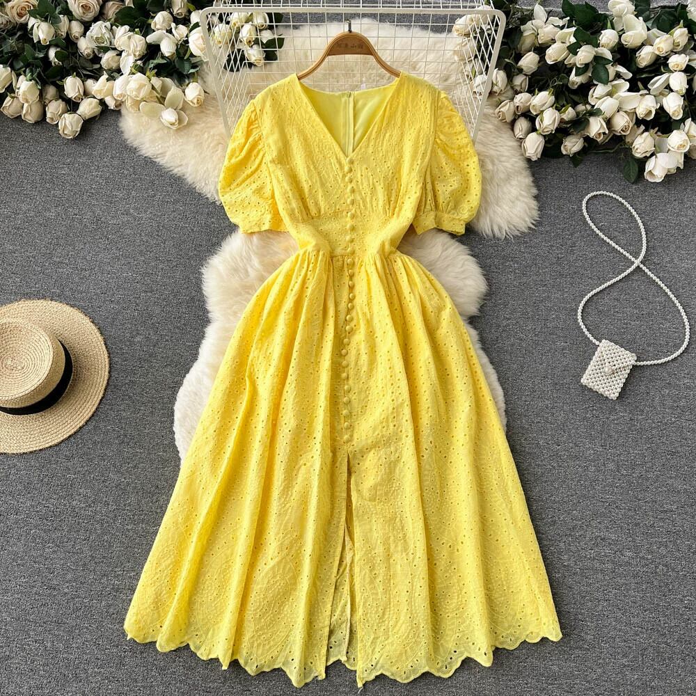 フランスの文学と芸術の小さな新鮮なドレス女性エストスタイル新しい夏のウエスト痩身気質Vネックルーズスカートトレンディ サマー 夏物 jie86422728519