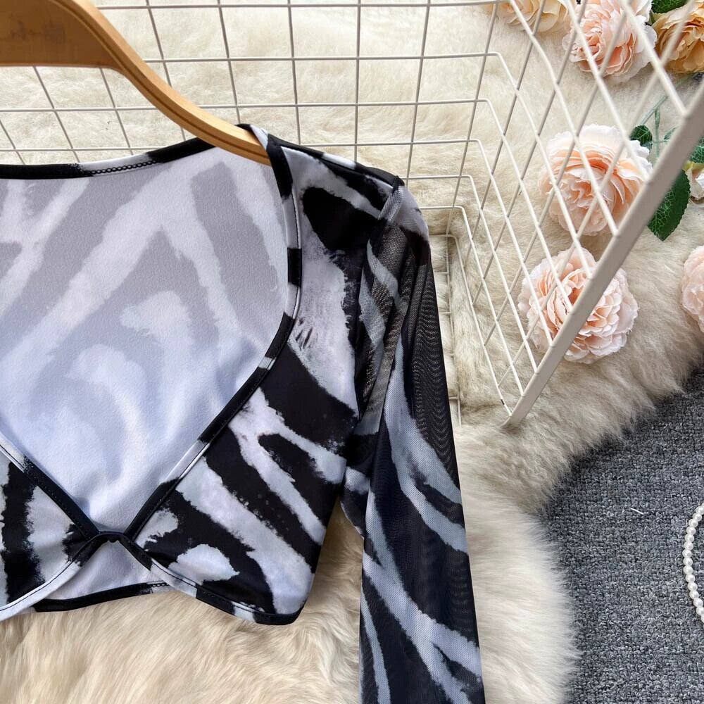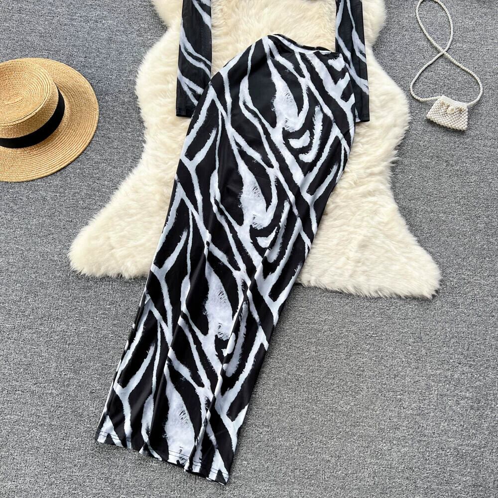 欧米風プリントスーツレディースショート長袖Vネックトップ+ヒップカバーミドル丈スカート2点セット ロング ヨーロピアン jie11176993616