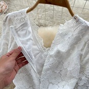 シックな気質のルーズな刺繍入り中空大きな裾 V ネック半袖ドレスの女性の夏の妖精の白のロングドレス ホワイト レッド サマー 夏物 Vネック jie78158138159