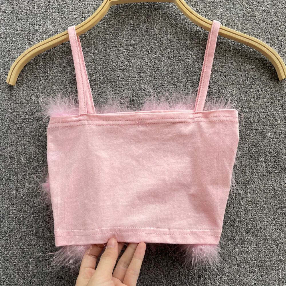 ヨーロッパとアメリカのファッションボトリングピンクの毛皮のようなチューブトップサスペンダートップの女性、ファッショナブルなインナーウェアとアウターウェア、トレンディなベスト ヨーロピアン jie55379188259
