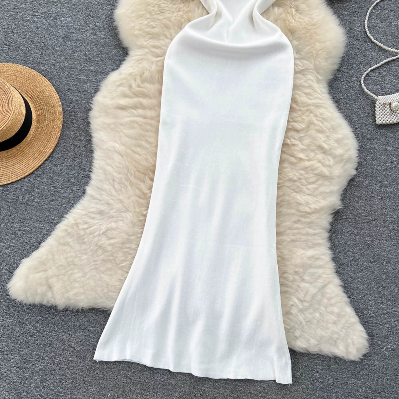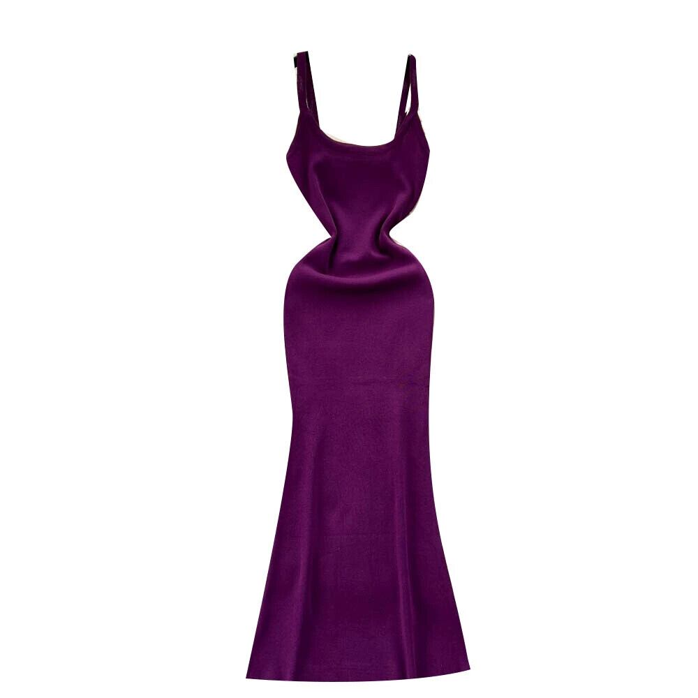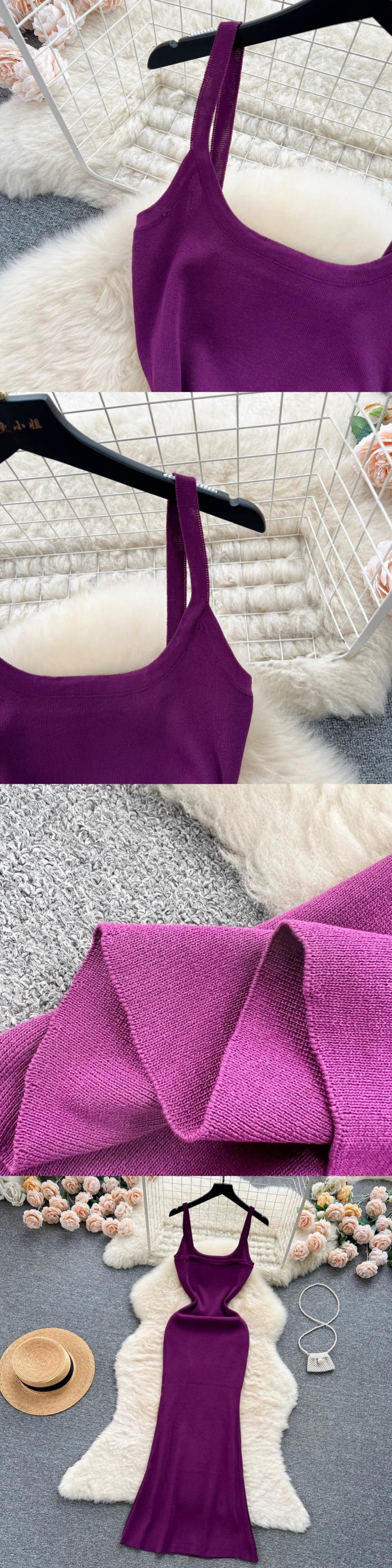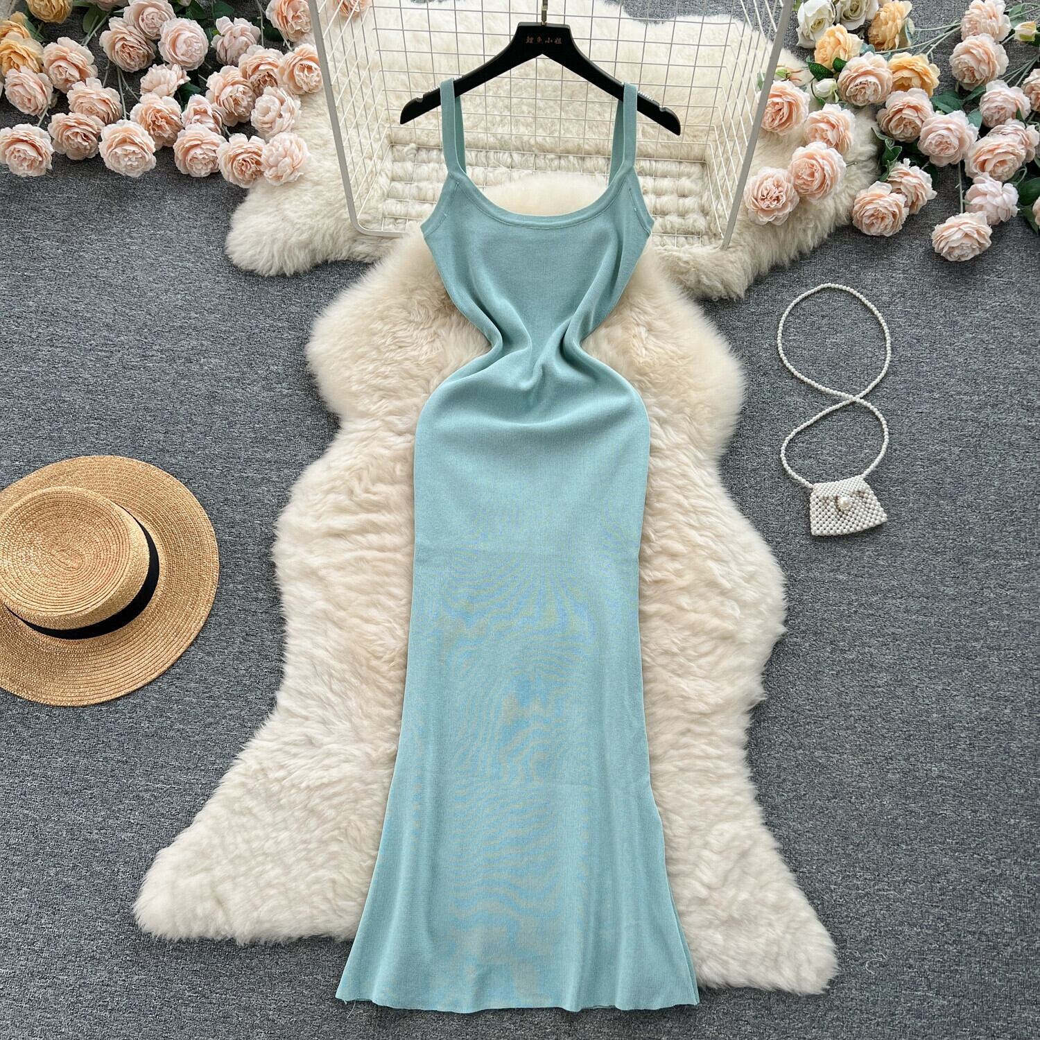 軽い豪華でハイエンドのスリングニットドレスの女性の夏のミニマリストソリッドカラースリムフィットニッチユニークなエレガントなドレス サマー 夏物 jie67267862809