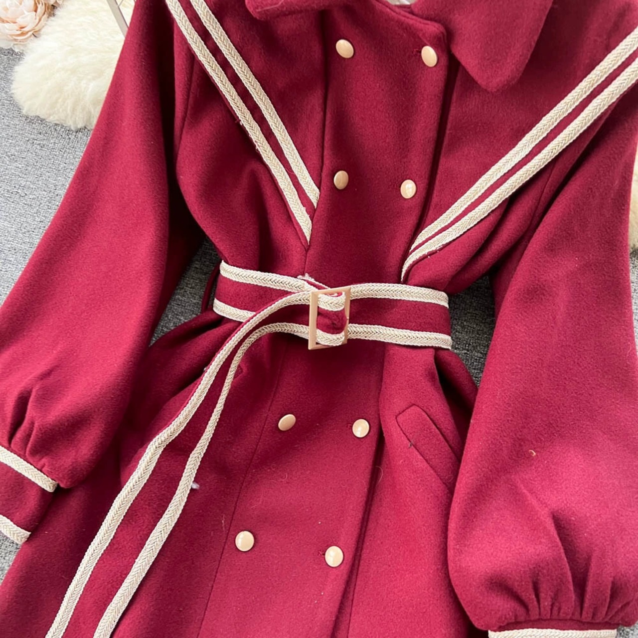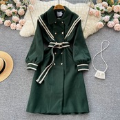 秋と冬の人形ラペルレトロ A ラインドレス女性のダブルブレストウインドブレーカーウエストストラップ大きな裾 A ラインロングスカート オータム 秋物 ウィンター 冬物 Aライン jie14504351716