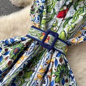 春夏の新スタイル宮殿スタイルノースリーブラペルウエストウエスト痩身西洋スタイルヨーロッパとアメリカのプリントミッドレングスドレスサブトレンド レース スプリング 春物 サマー 夏物 ヨーロピアン jie19748758647