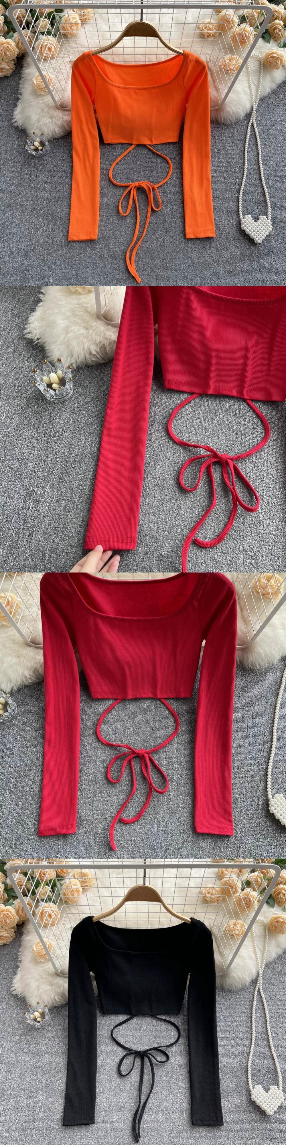 -夏のスクエアネックTシャツレディース、シックで策略的なレースアップショートTシャツ、アメリカンレトロな長袖ボトムシャツ ロング サマー 夏物 スクウェア jie81202583650