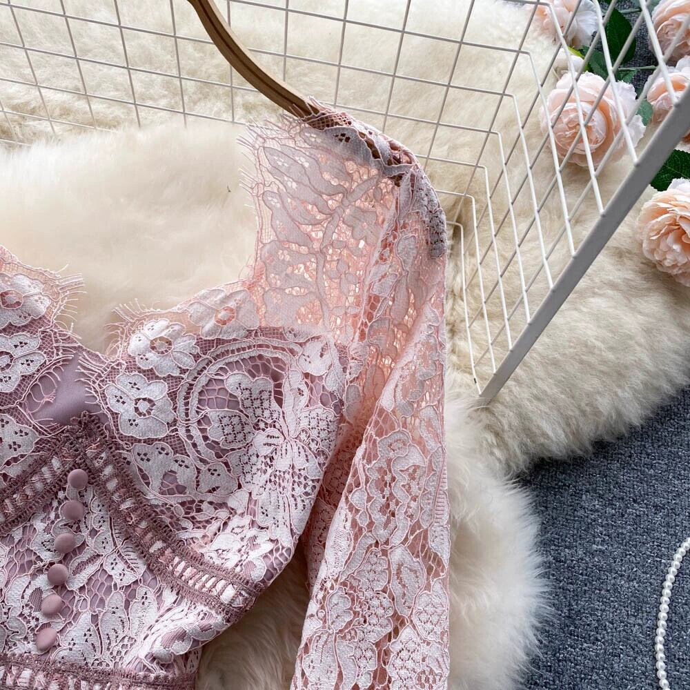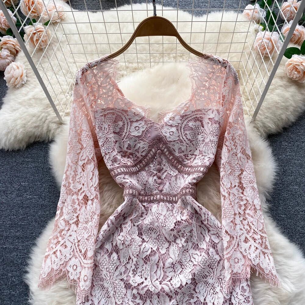 2022 春スタイルのライト高級スウィートレディレーススリムフィットヒップハグセクシーな純粋な欲望のドレスの女性 大人ガーリー キュート カジュアル スプリング 春物 ピュア jie15313363813
