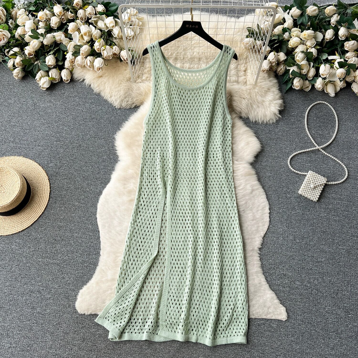 ニットベストドレス女性のニッチデザイン中空スリットアウターレイヤリングブラウス夏の新作ルーズロングスカート サマー 夏物 jie5312793321