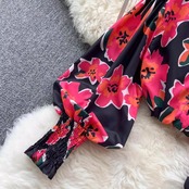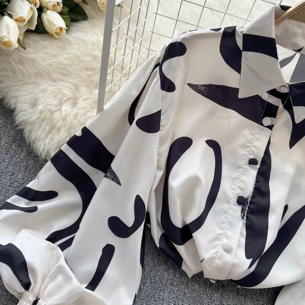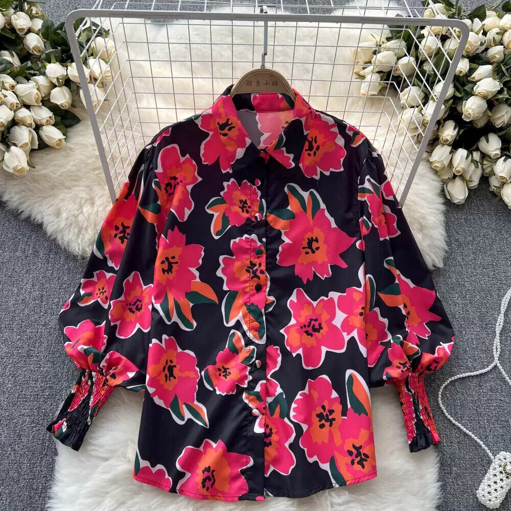 2022 秋ニッチシフォントップスフェミニンプリントアウター長袖洋風シャツ ロング オータム 秋物 jie93423419037