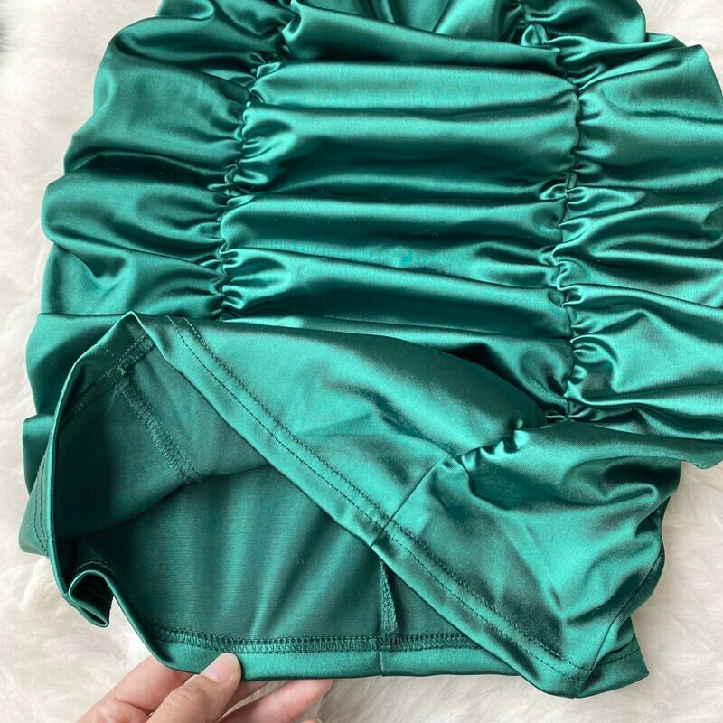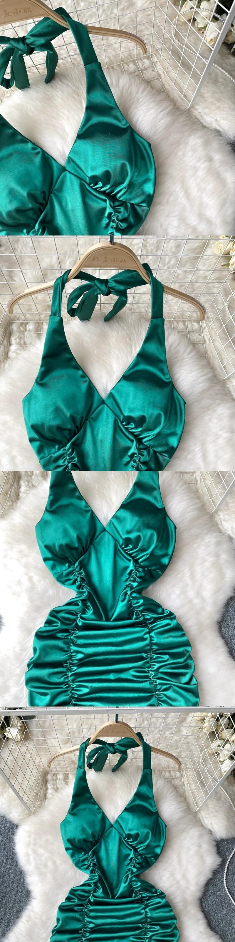 夏の新スタイルプリーツセレブレースアップホルターネックスリムヒップカバードレス女性チューブトップセクシーなドレススカート サマー 夏物 jie64534691370