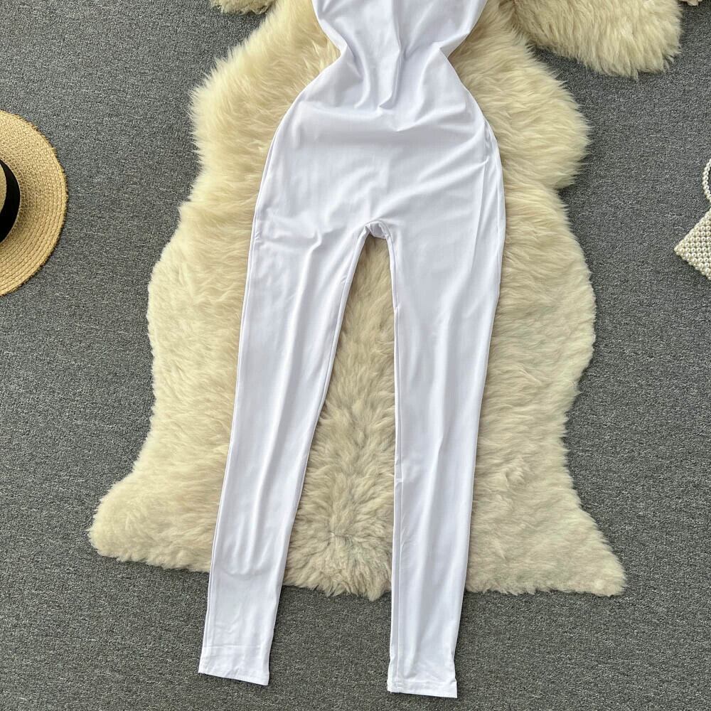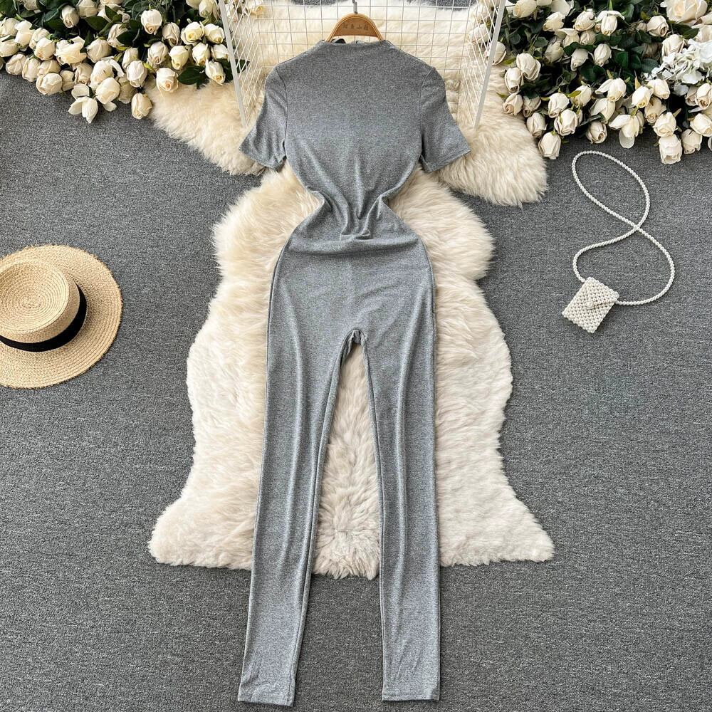 ヨーロッパとアメリカの香港スタイルのニッチ半袖ハイジャンプスーツ女性のタイトフィット痩身小脚パンツ無地シンプルウエストパンツトレンディ ソリッドカラー ヨーロピアン jie72520934260