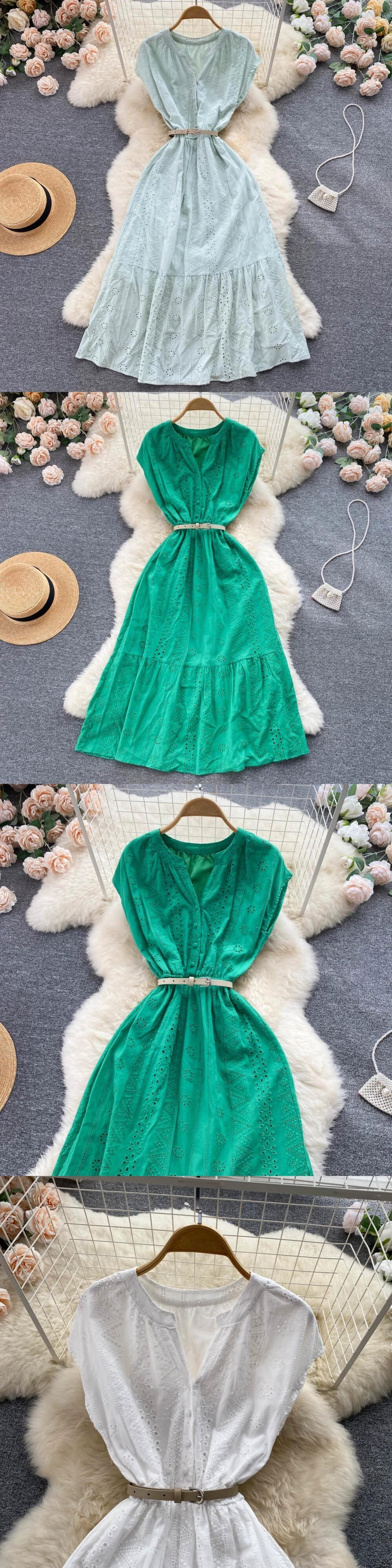 -エンドシック、美しいウエスト痩身ドレス、夏のレディースドレス、淑女のような気質、ノースリーブの白いAラインスカート ホワイト サマー 夏物 jie15809229986