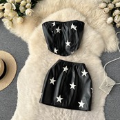 春夏新作セクシースタイルスタープリントスーツレディースショートチューブトップ+ヒップカバースカート2点セット スプリング 春物 サマー 夏物 jie69042886031