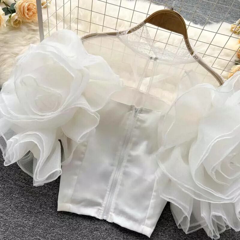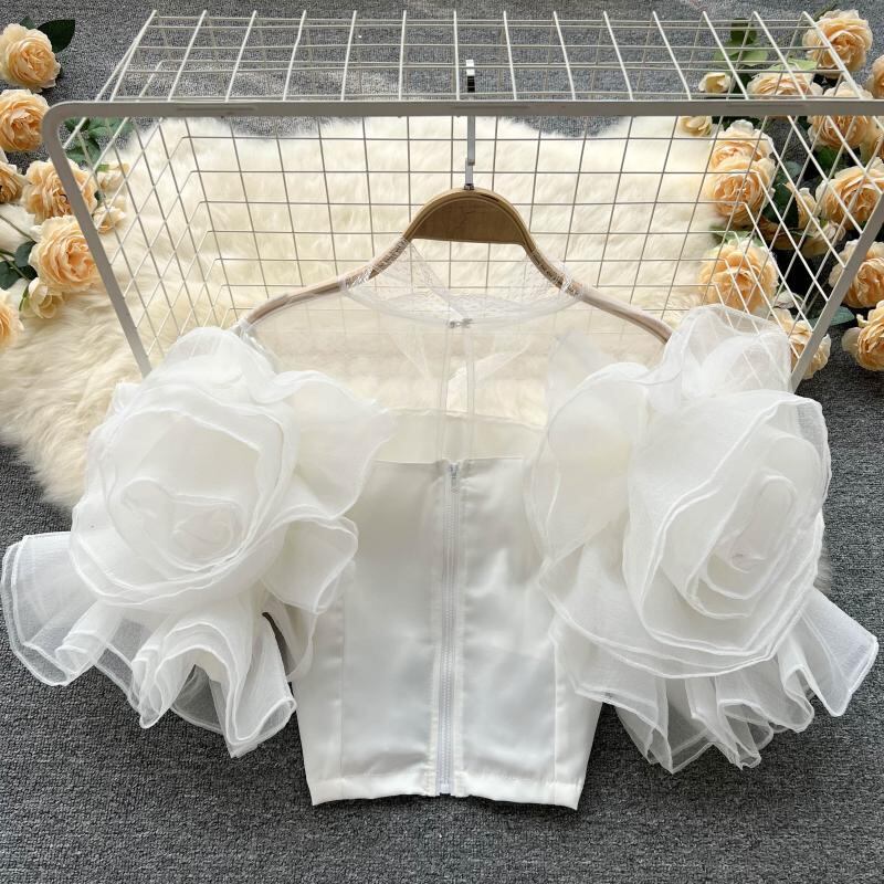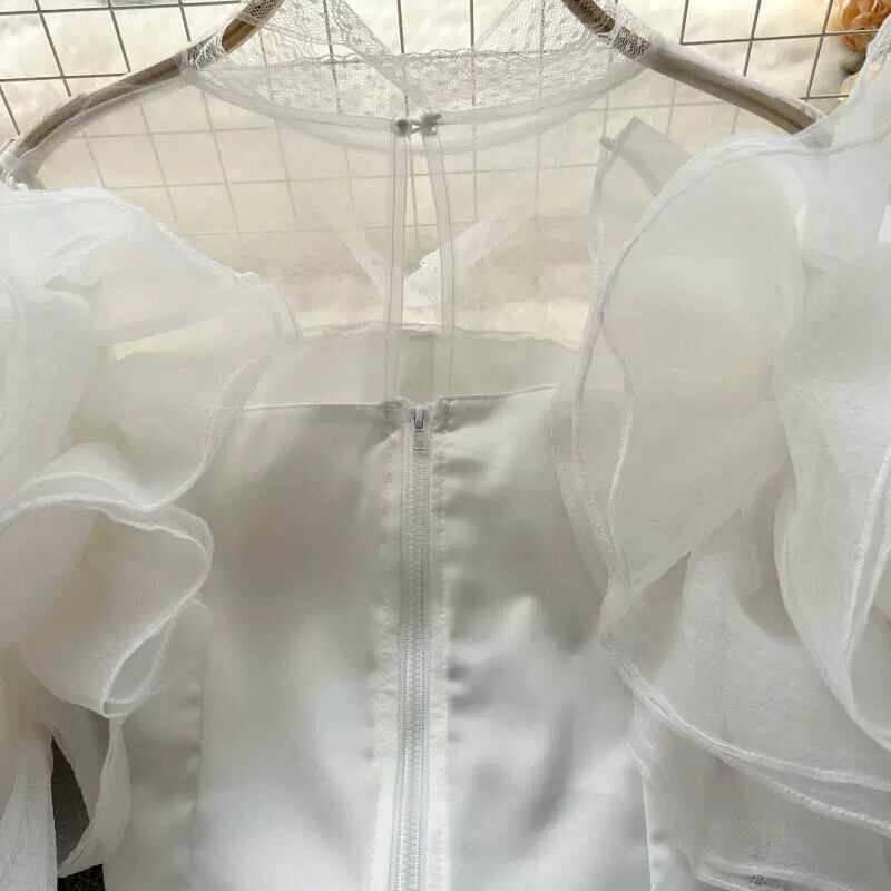 ニッチメッシュオフショルダートップ女性 2022 夏ちょう結びスタイルフリルシャツシフォントップ リボン サマー 夏物 jie60930687211