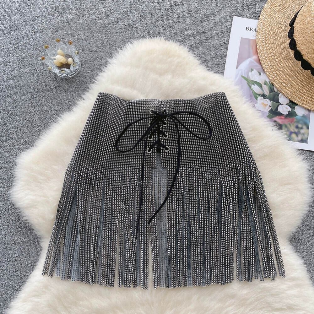 セクシーなウエストストラップフルダイヤモンドテルスカート女性ハイウエスト痩身ステージパーマンス服ショートスカート ハイウェスト jie30939792904
