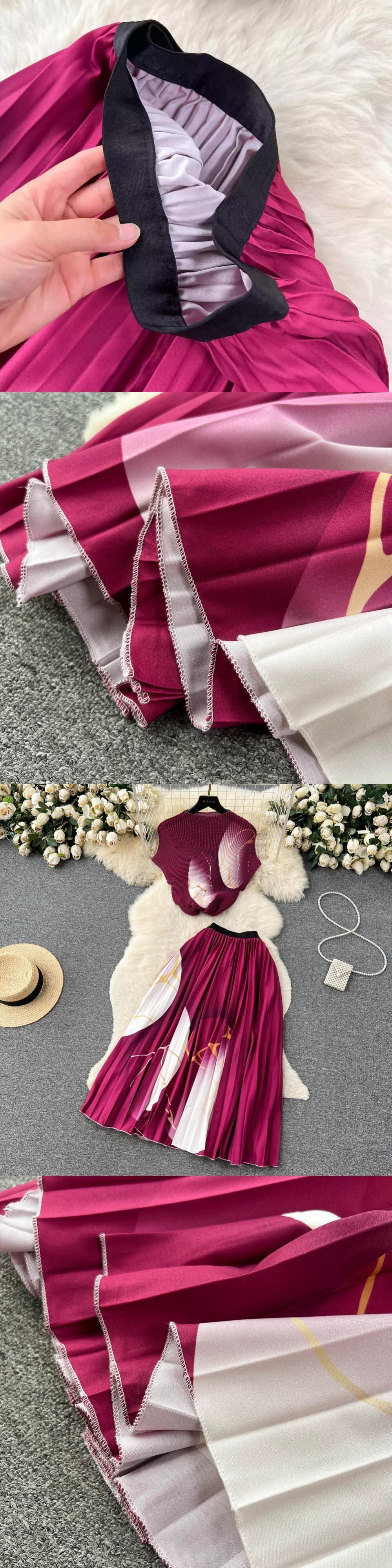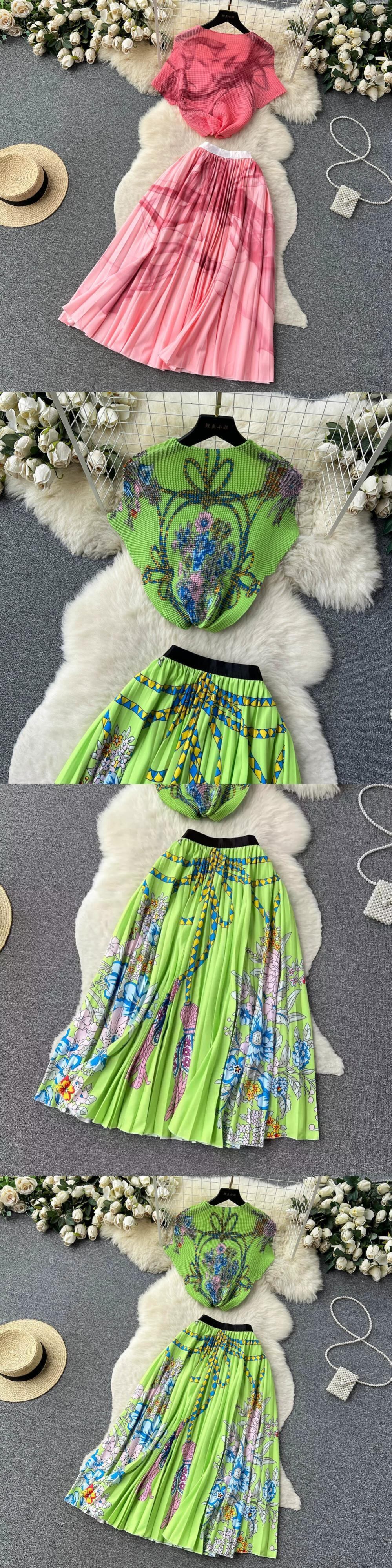 Sfumato プリントスーツの女性の夏の新しいスタイルの高級気質ハーフタートルネックトップ + プリーツスカート 2 点セット サマー 夏物 jie87664078929