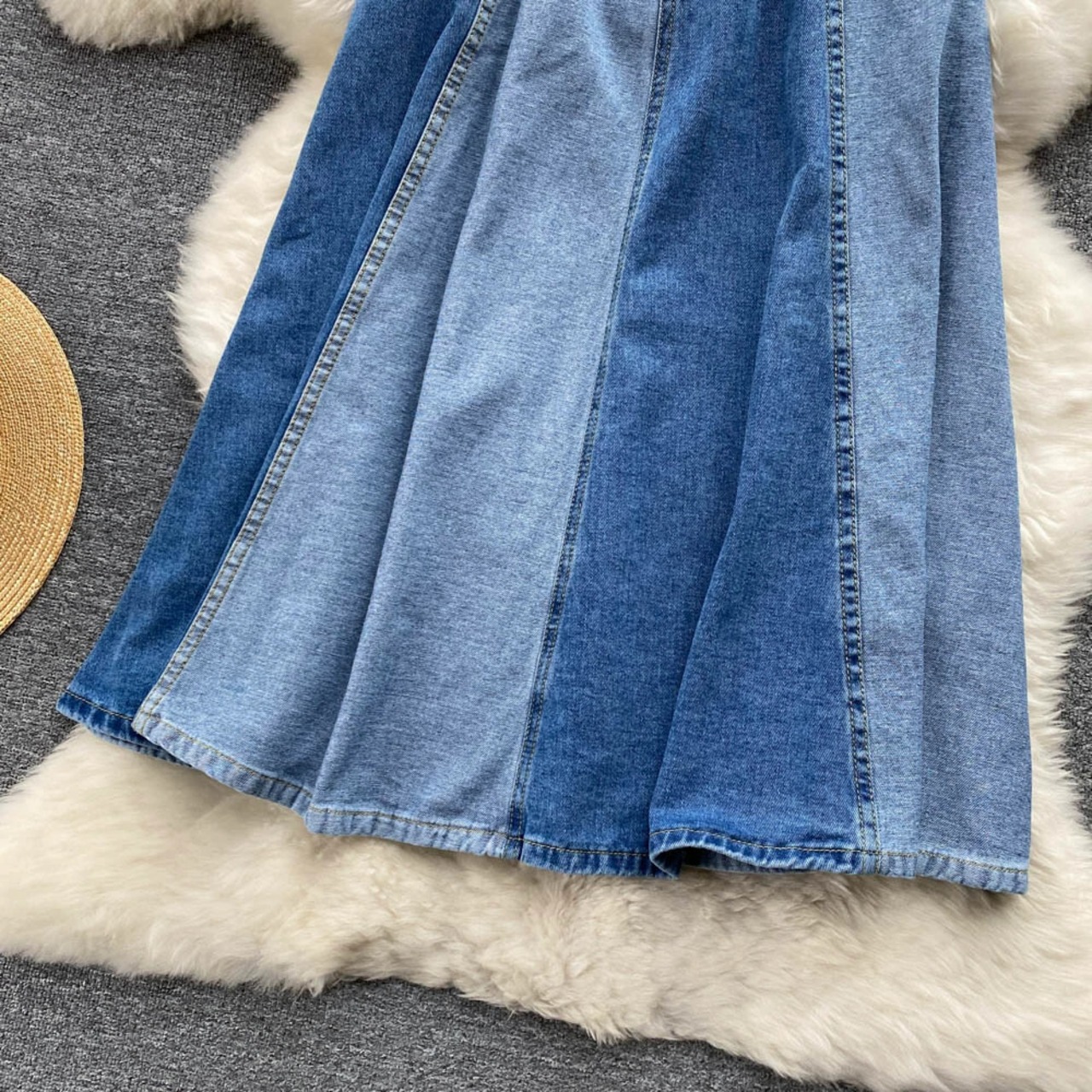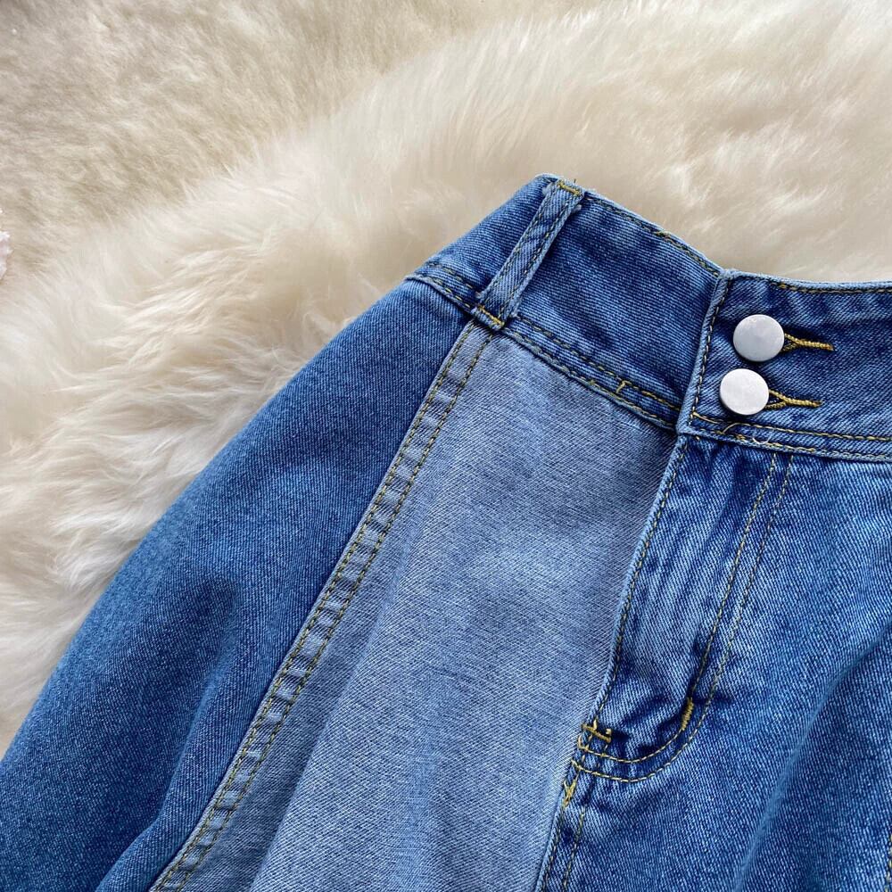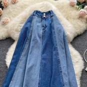 春夏の新作ミドル丈デニムスカートレディース、ゆったり、痩身、カラーブロック、大きなAラインヒップスカート、ハイウエストスカート スプリング 春物 サマー 夏物 jie9971318496