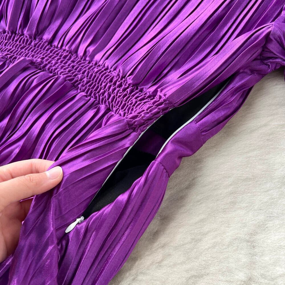 春と秋のフレンチスタイルのハイエンド気質社交界の女神スタイルの長袖ドレスの女性のウエストプリーツサテンロングスカートトレンディ スプリング 春物 オータム 秋物 jie72891549246