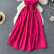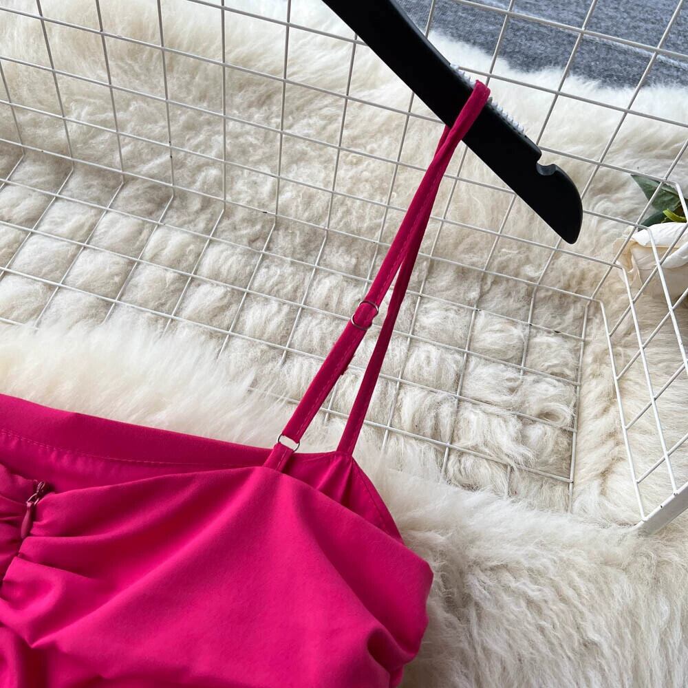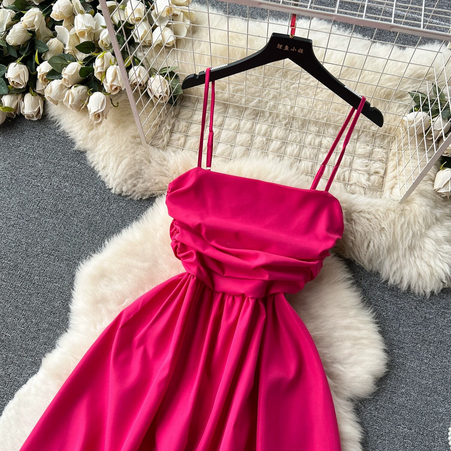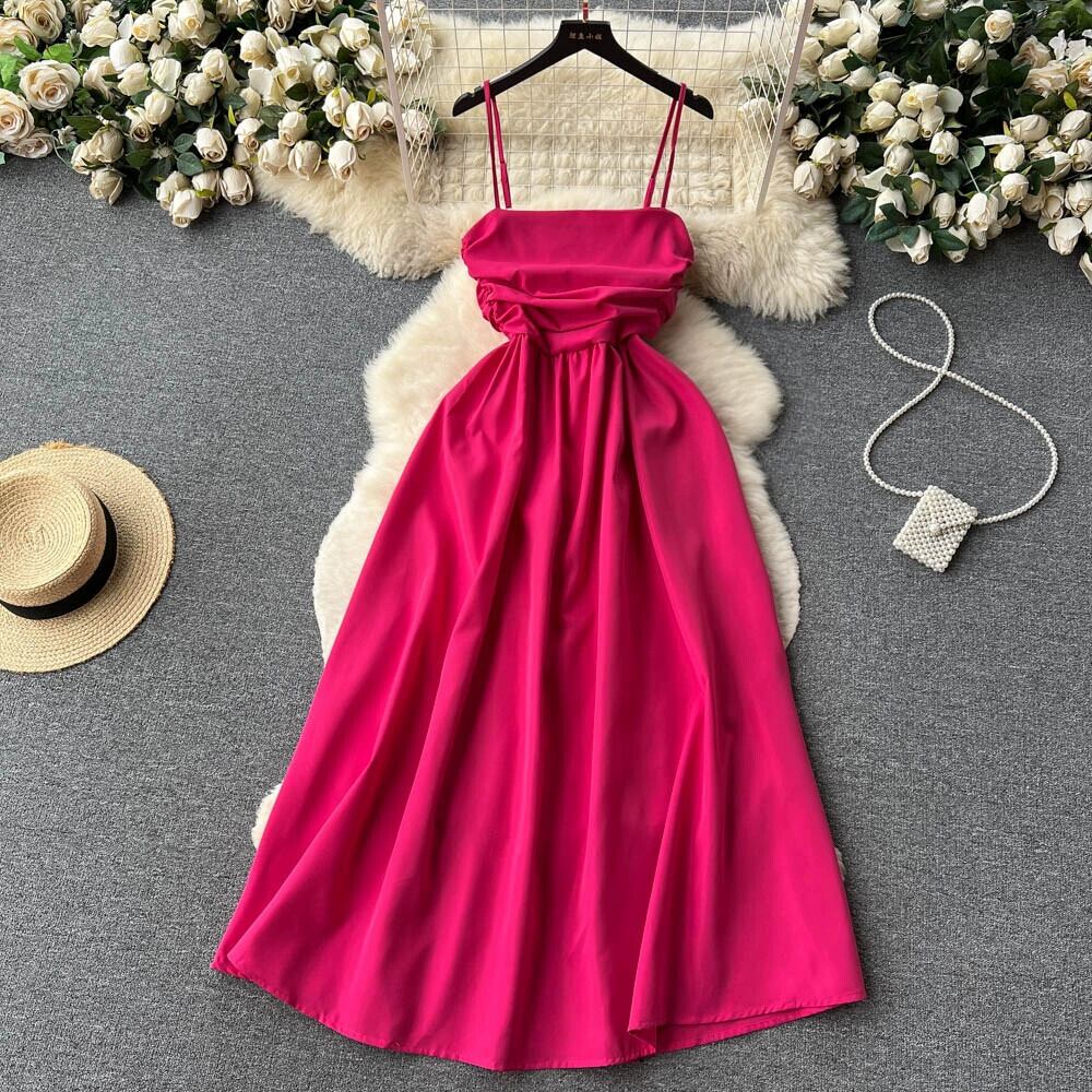 フランスの純粋な欲望のセクシーなチューブトッププリーツサスペンダードレス女性の夏のウエスト痩身気質海辺の休暇ロングドレス サマー 夏物 ピュア jie57485789424
