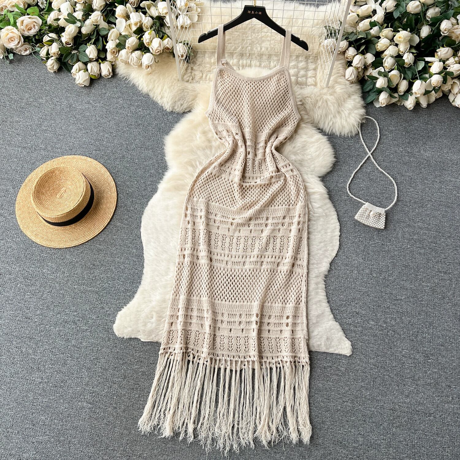 シックなレトロな中空かぎ針編みサスペンダースカートレディースミッドレングスアウターブラウスローエッジテルホリデードレス jie39924625545