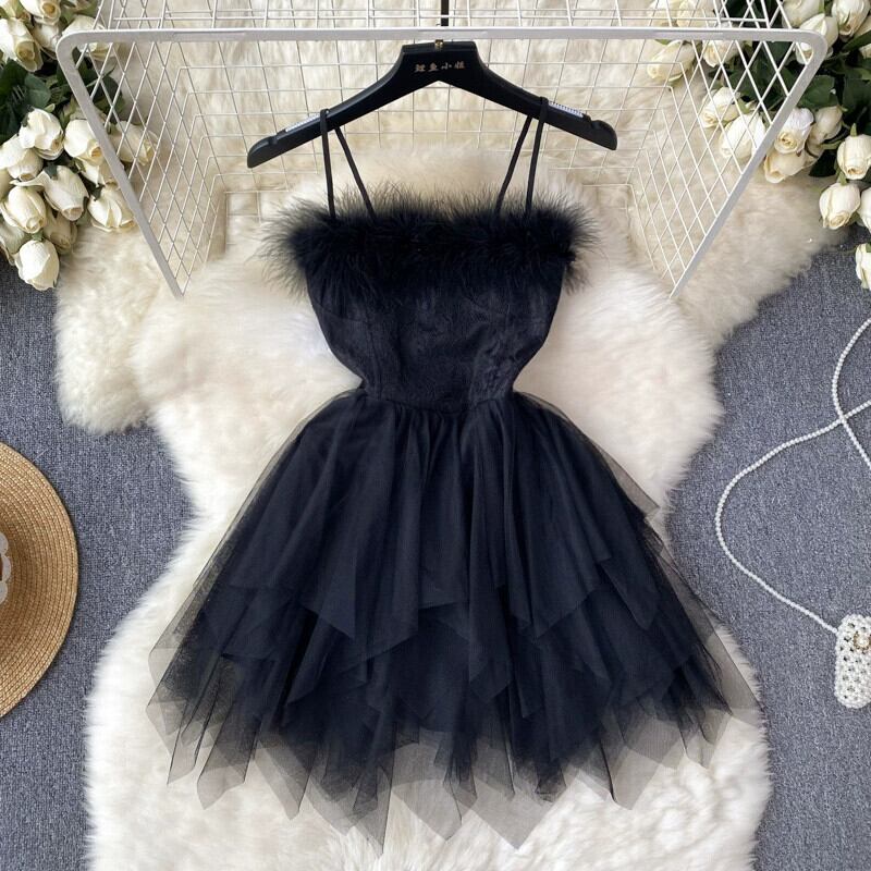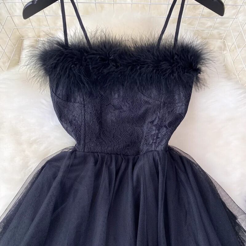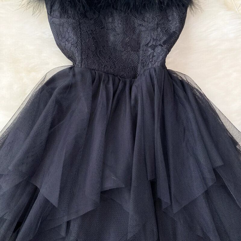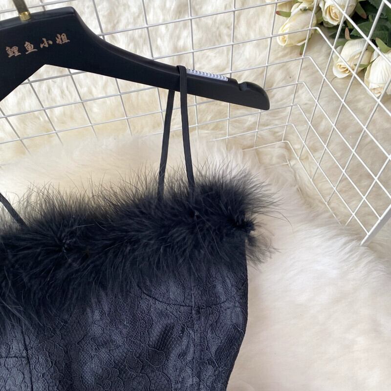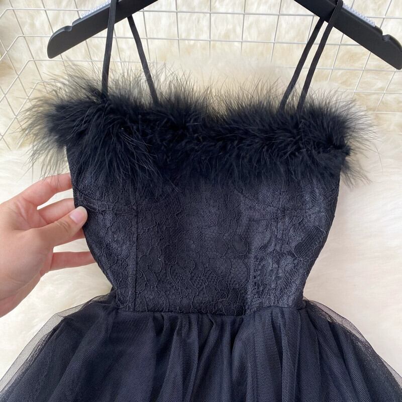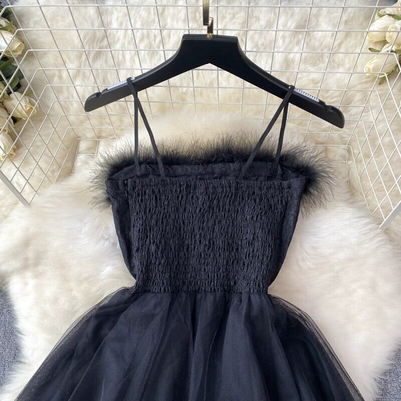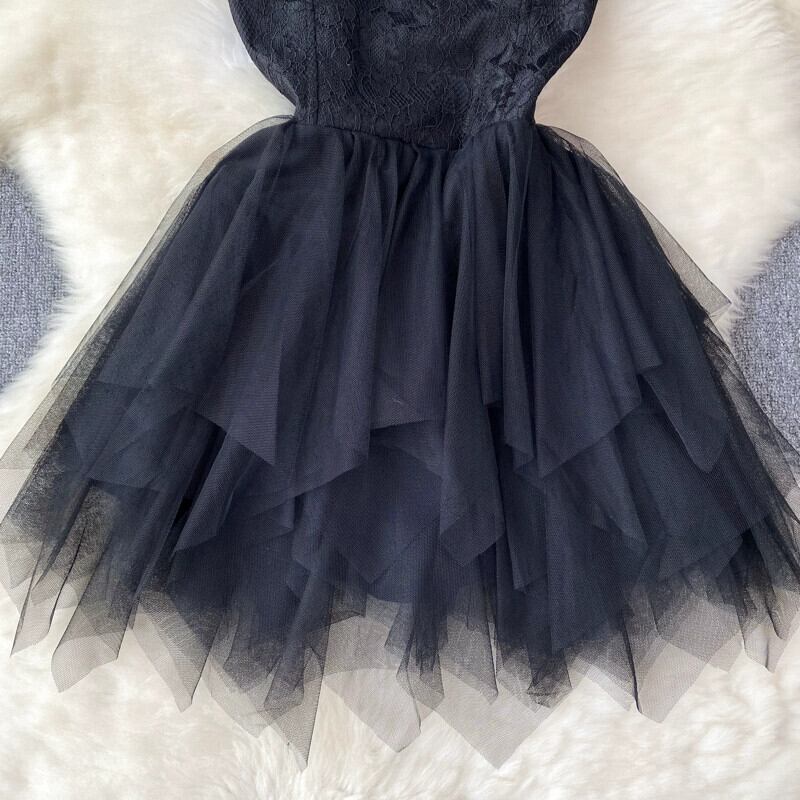 フレンチサスペンダードレスの女性の夏のレースのフェザーステッチデザインニッチハイエンドメッシュスカート サマー 夏物 jie29304404861
