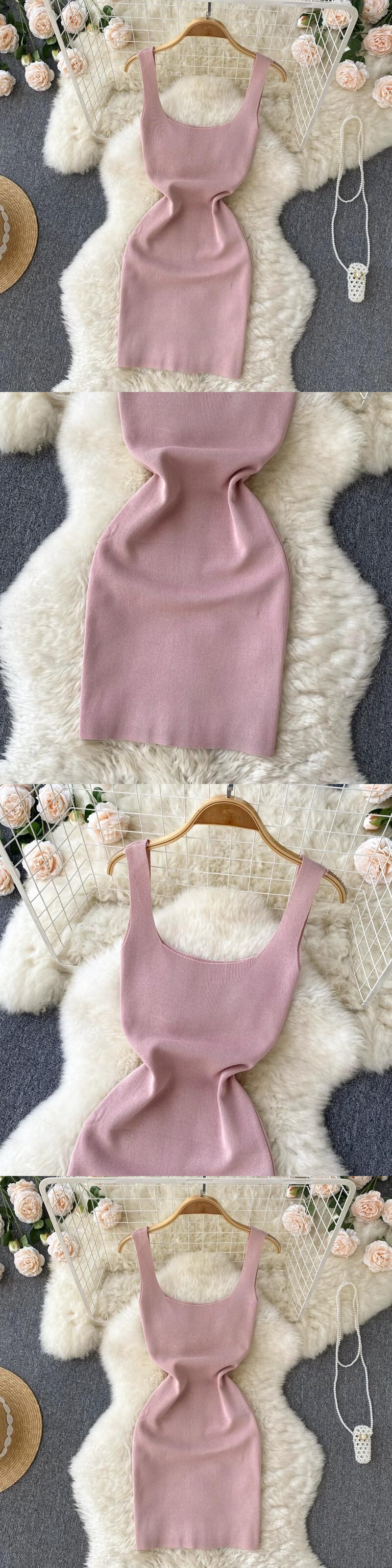 ソリッドカラーのシンプルなニットサスペンダードレスの女性の2022年夏新しいスタイルのウエストを締める、多用途、気質とヒップをカバーするスカート、トレンディな サマー 夏物 jie78466729546