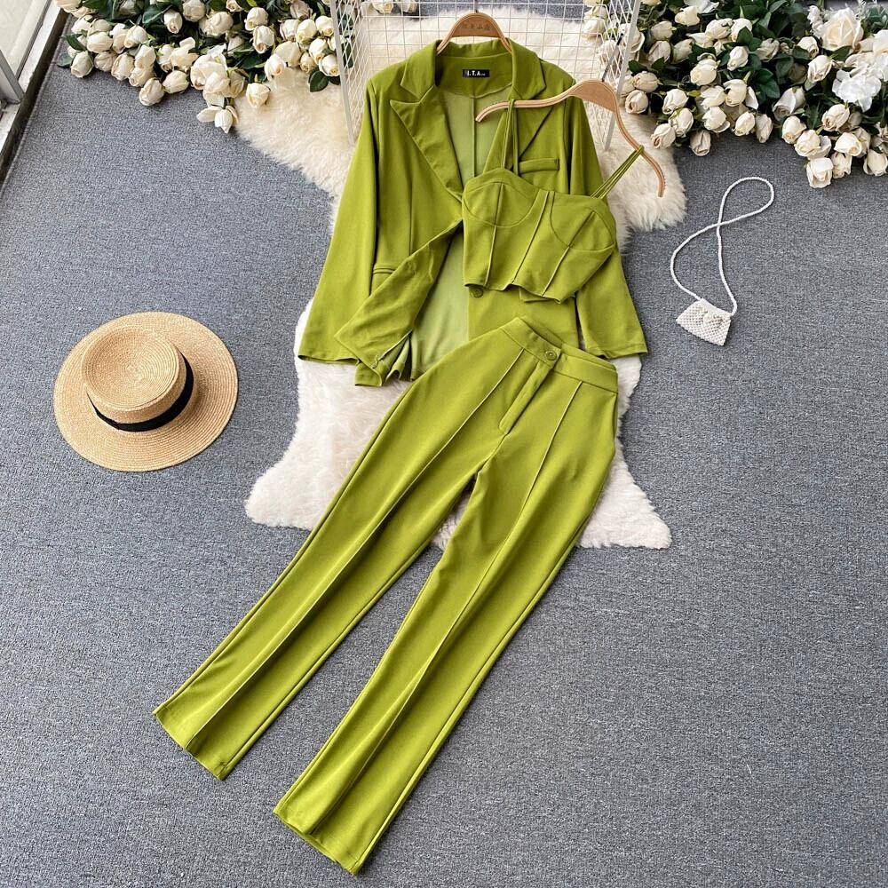 プロフェッショナルOLスーツ ラペル長袖ウエストスーツ ルーズトップ+ストレートスリムカジュアルスーツパンツ 3点セット ロング jie14629846960