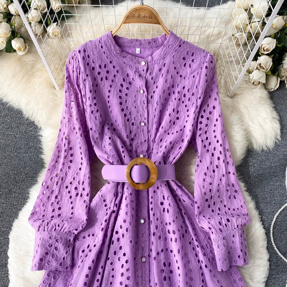 2022 春の新作甘いカレッジスタイルの小さな新鮮な長袖ウエストプリントドレス女性の初恋ロングスカート 大人ガーリー スウィート キュート カジュアル スプリング 春物 jie15646047108