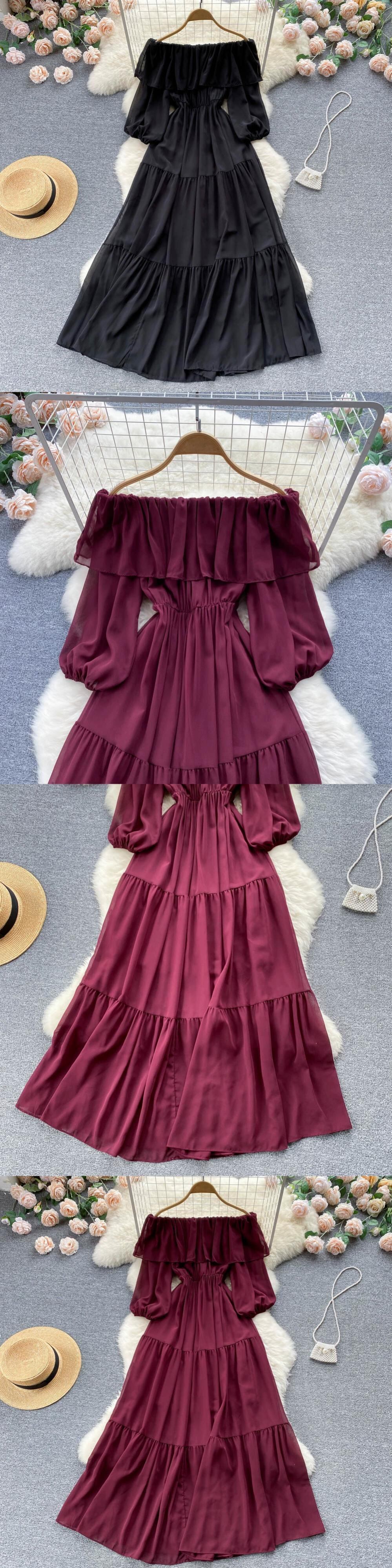 バージョンのカイ春と夏の新しいワンショルダーフリルレイヤードウエストプリーツ気質ドレスシンプルなロングスカート レッド スプリング 春物 サマー 夏物 jie16199268888