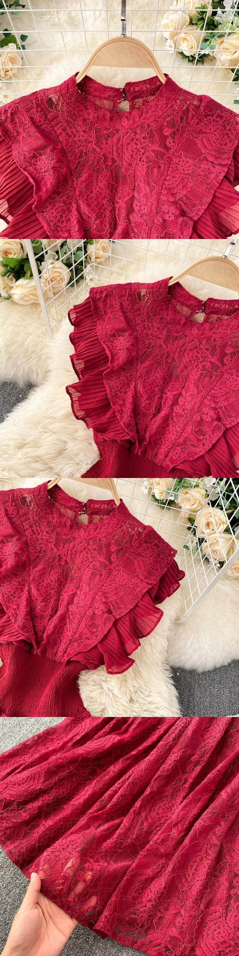 軽くて洗練された女性のフレンチエレガントでフェミニンなプリーツフリルウエスト痩身レースドレス春ドレス スプリング 春物 jie19250108269