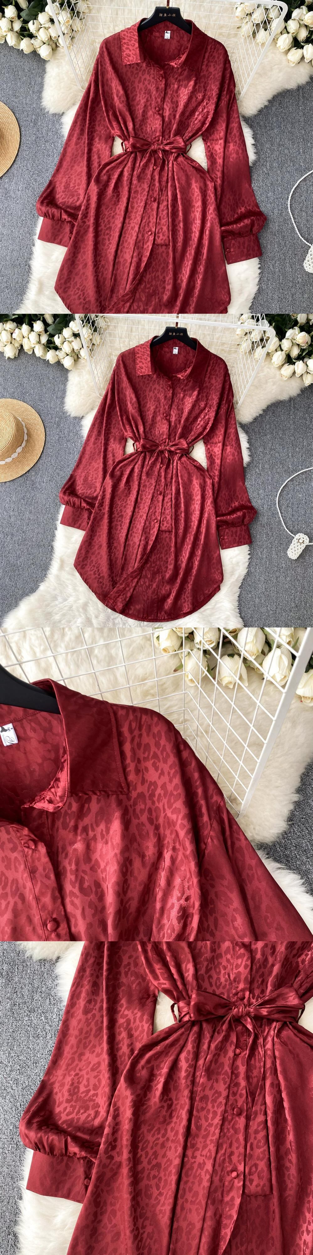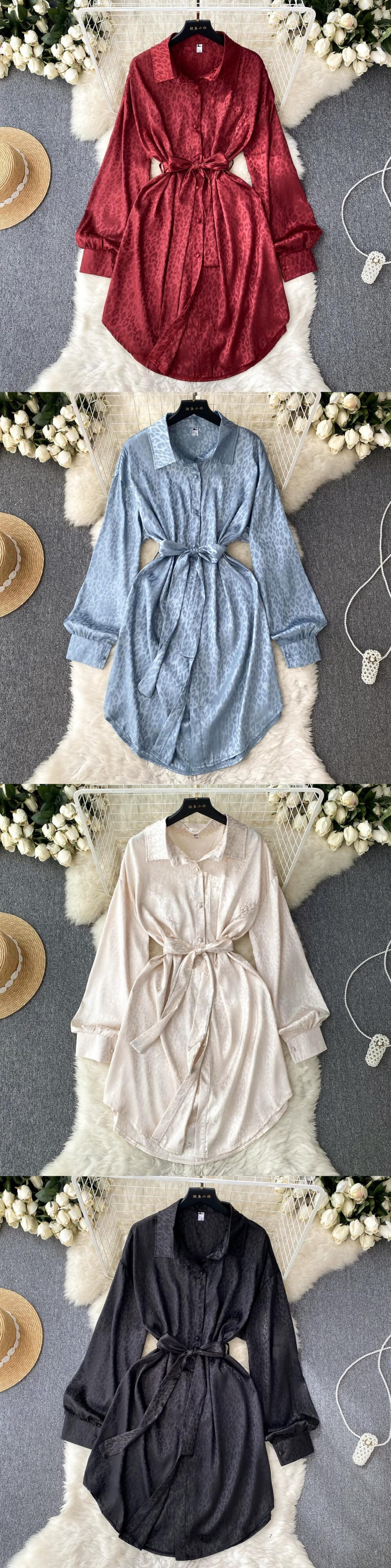 気質の女神スタイルのハイエンドサテン長袖シャツドレスレディースレースアップウエストカジュアル多用途シャツスカート ロング jie52180820460