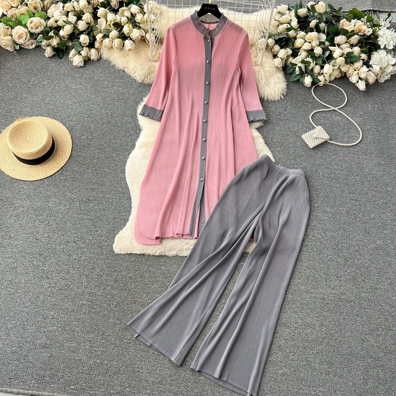 軽く豪華でハイエンドのファッションロイヤルスーツの女性、春夏のロングルーズシャツ+ハイウエストスリムパンツ スプリング 春物 サマー 夏物 jie45216381002
