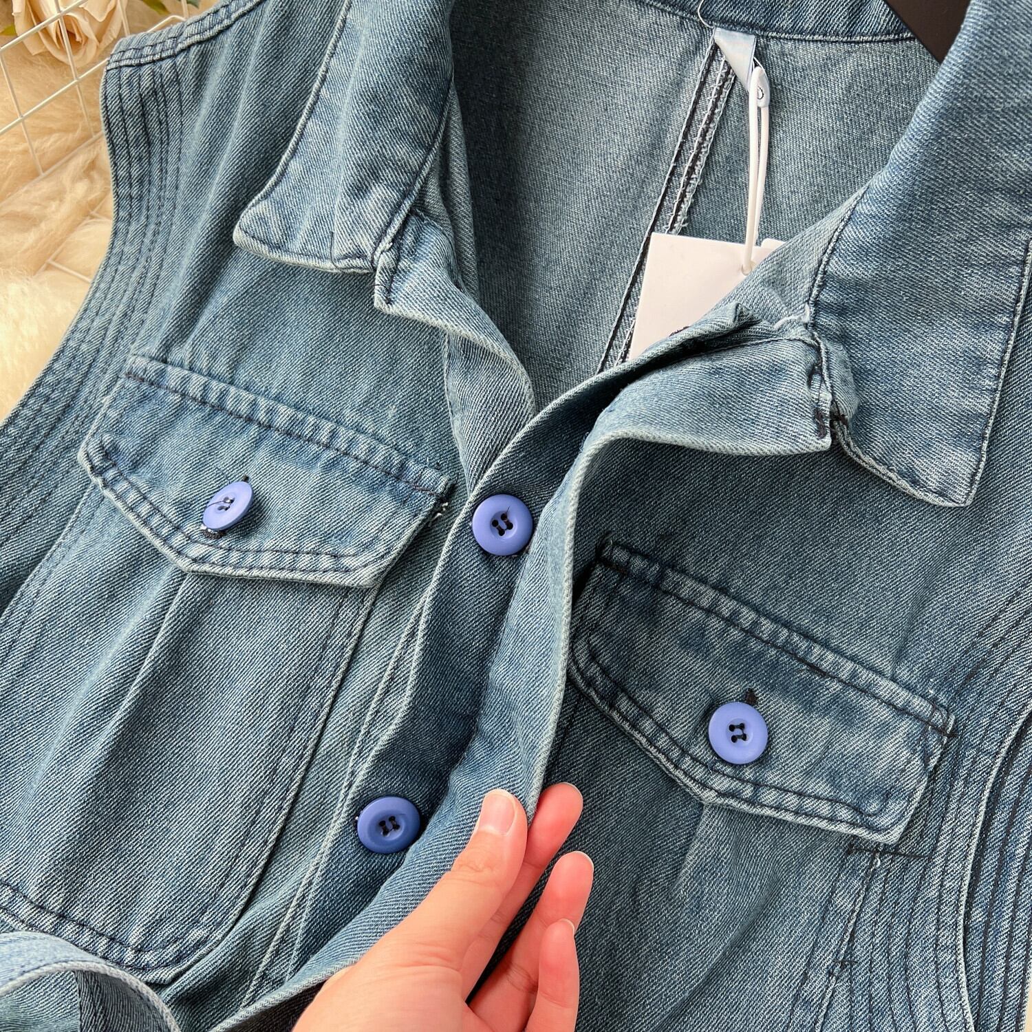 アメリカンレトロなネクタイスタイルのデニムジャンプスーツレディース、夏のノースリーブストラップデザイン、ニッチドレープワイドレッグパンツ サマー 夏物 jie95687315986